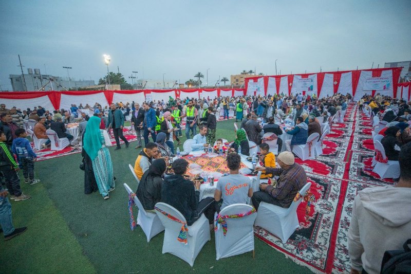 يذكر ان المائدة ضمت مختلف أصناف الطعام من اللحوم والدواجن والخضروات والفواكه والحلويات والمشروبات مع الالتزام واتباع إجراءات السلامة والصحة لإعداد الوجبات المقدمة للصائمين واتباع الإجراءات الوقائية وأعمال التطهير والتعقيم المستمر داخل أماكن تناول الوجبات، وشهدت المائدة إقبالًا كبيرًا من قبل المواطنين، وسط أجواء رمضانية مميزة تُعزز روح التكافل والتراحم بين أفراد المجتمع كما تم توفير 48 ألف وجبة إفطار لأبناء المحافظة خلال المرحلة الأولى من مبادرة أبواب الخير.