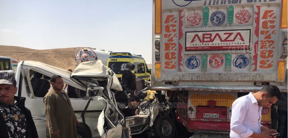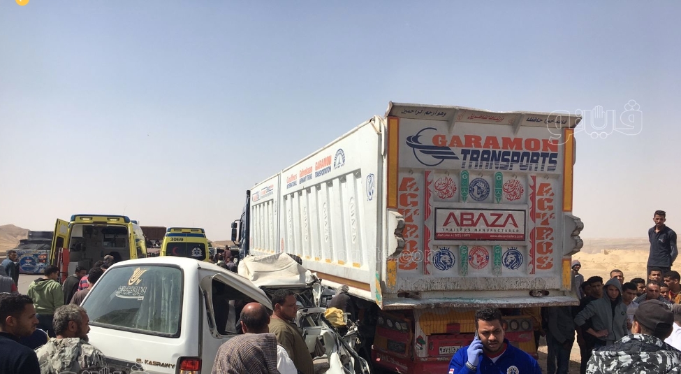 أول صور لمصرع 8 وإصابة 12 في تصادم ميكروباص بالطريق الإقليمي