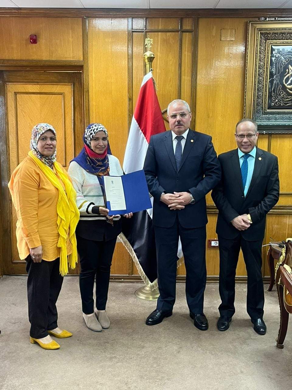 حضر مراسم تسليم القرار الدكتور محمد عبد النعيم نائب رئيس الجامعة لشئون التعليم والطلاب، والدكتورة وفاء عبد العظيم الحسيني عميد كلية التمريض ورئيس مجلس إدارة المعهد الفني للتمريض.