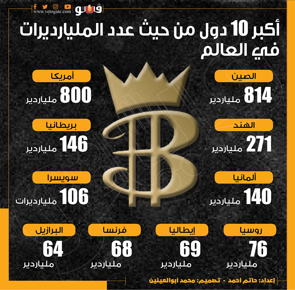 أكبر 10 دول من حيث عدد المليارديرات في العالم (إنفوجراف) الجمعة 29/مارس/2024 - 06:47 م 3/29/2024 6:47:15 PM أثرياء العالم، فيتو حاتم أحمد شارك طباعة 18 حجم الخط شارك طباعة الملياديرات أثرياء العالم الصين أمريكا