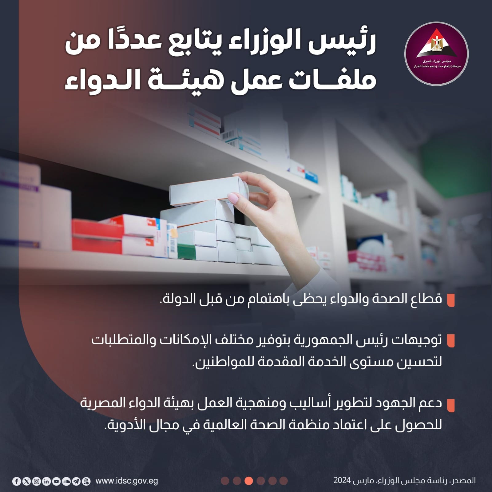 رئيس الوزراء يتابع ملفات هيئة الدواء