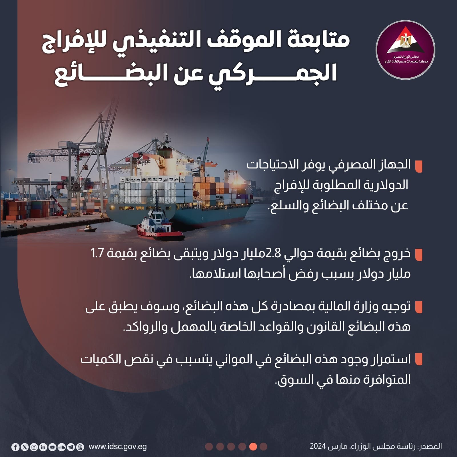 متابعة الموقف التنفيذي للإفراج الجمركي عن البضائع