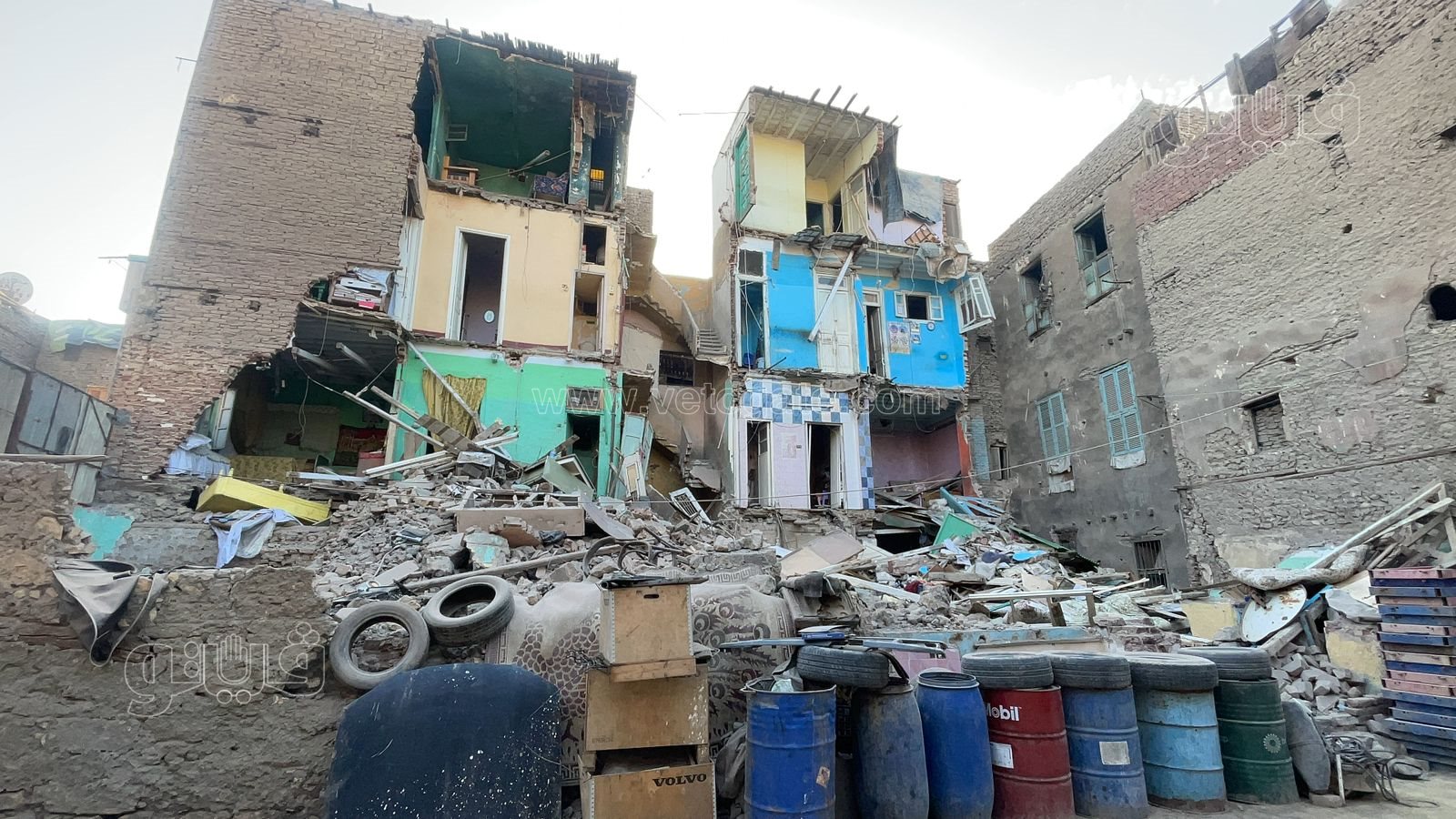 وكشف الفحص الأولي، انهيار العقار بالكامل، وإصابة إحدى السيدات.