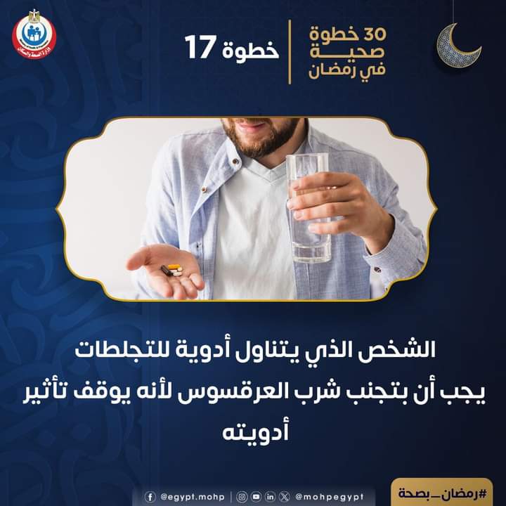 حذرت وزارة الصحة المرضى اللذين يتناولون أدوية للوقاية من الجلطات من تناول شراب العرقسوس، لأنه يوقف تأثير أدوية الجلطات.