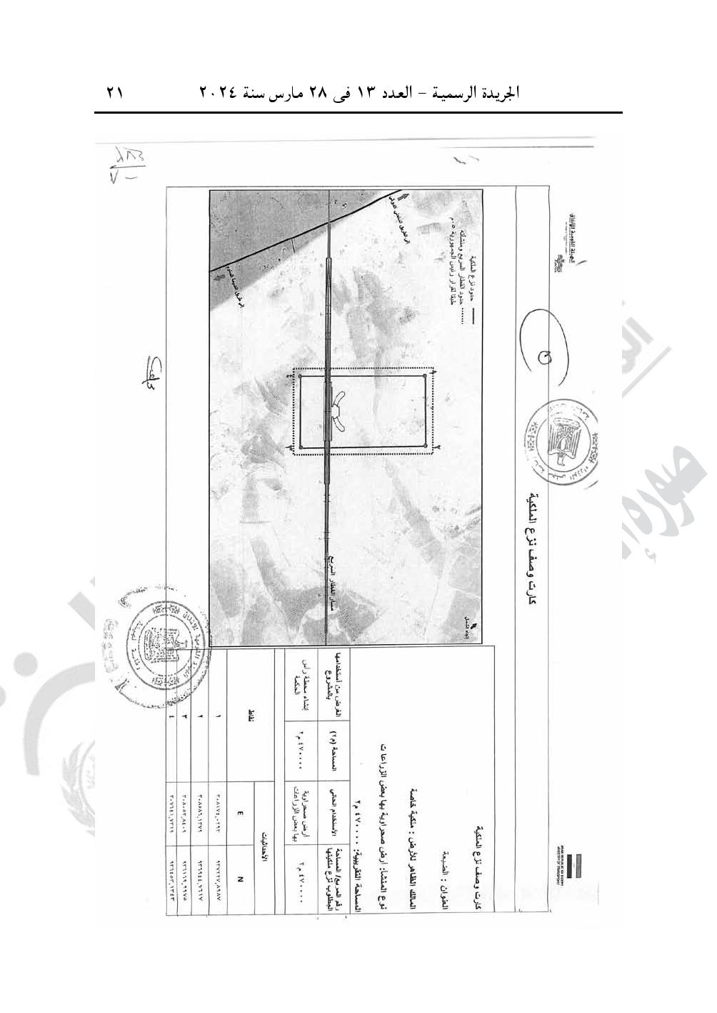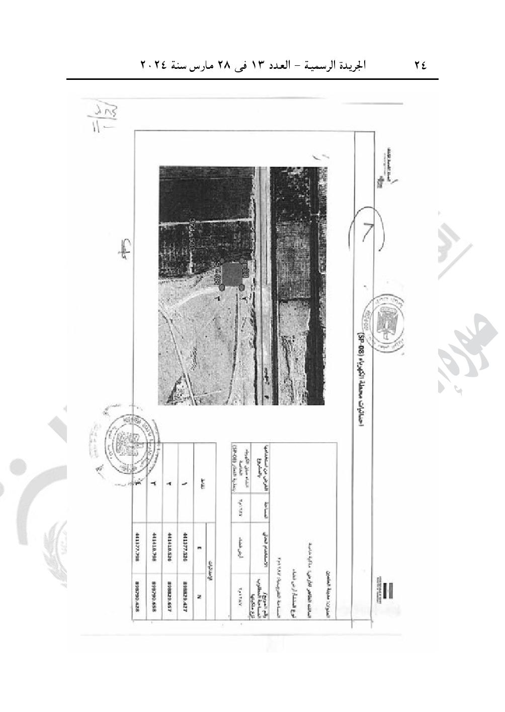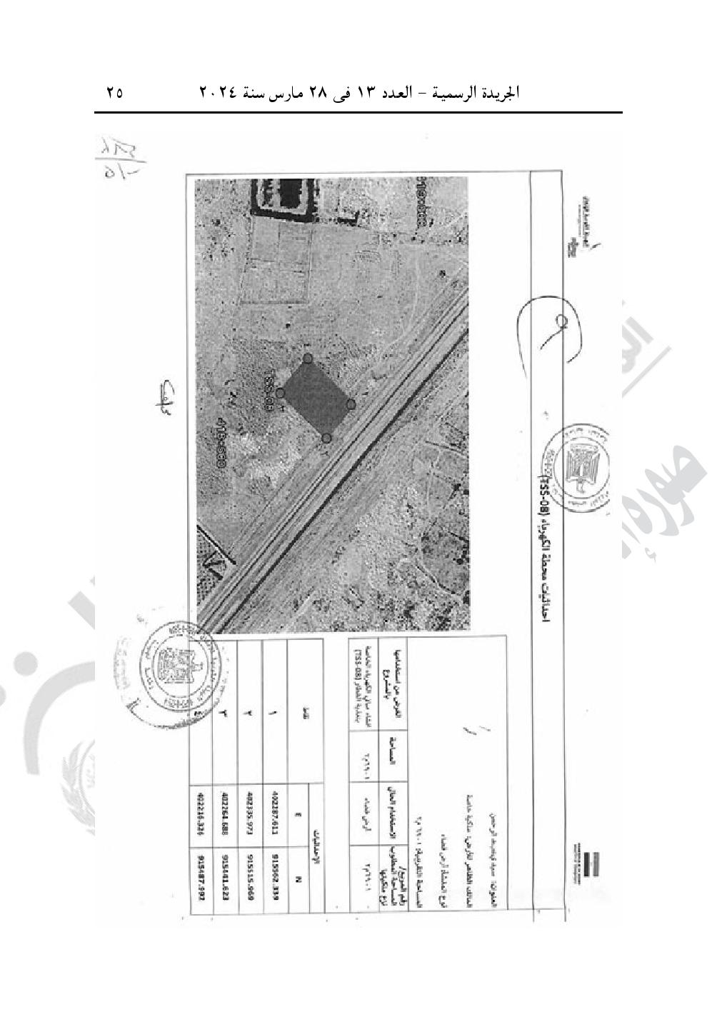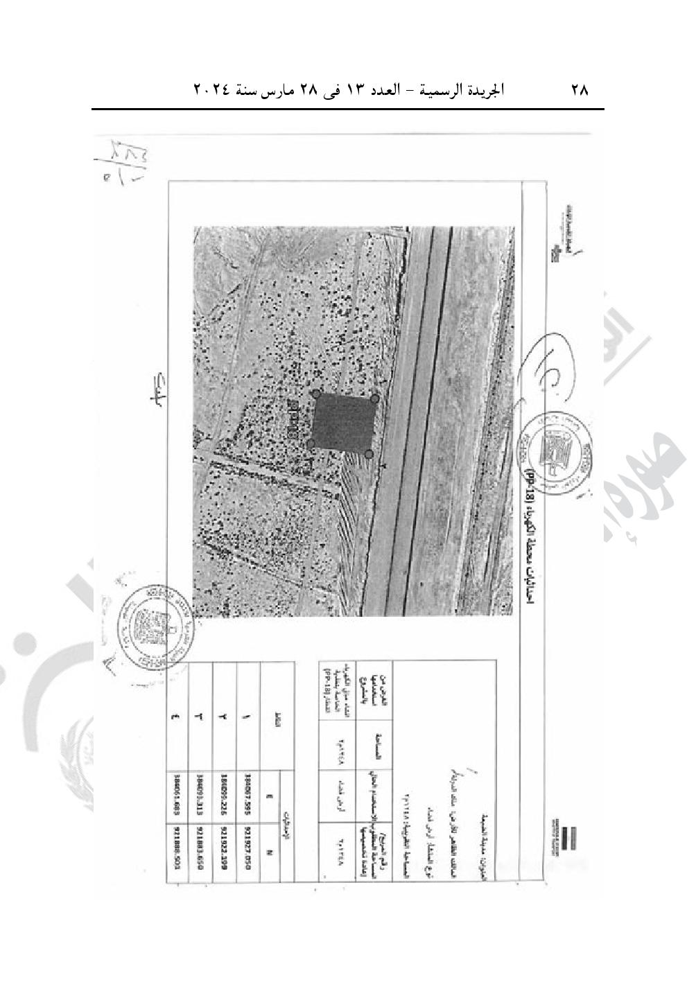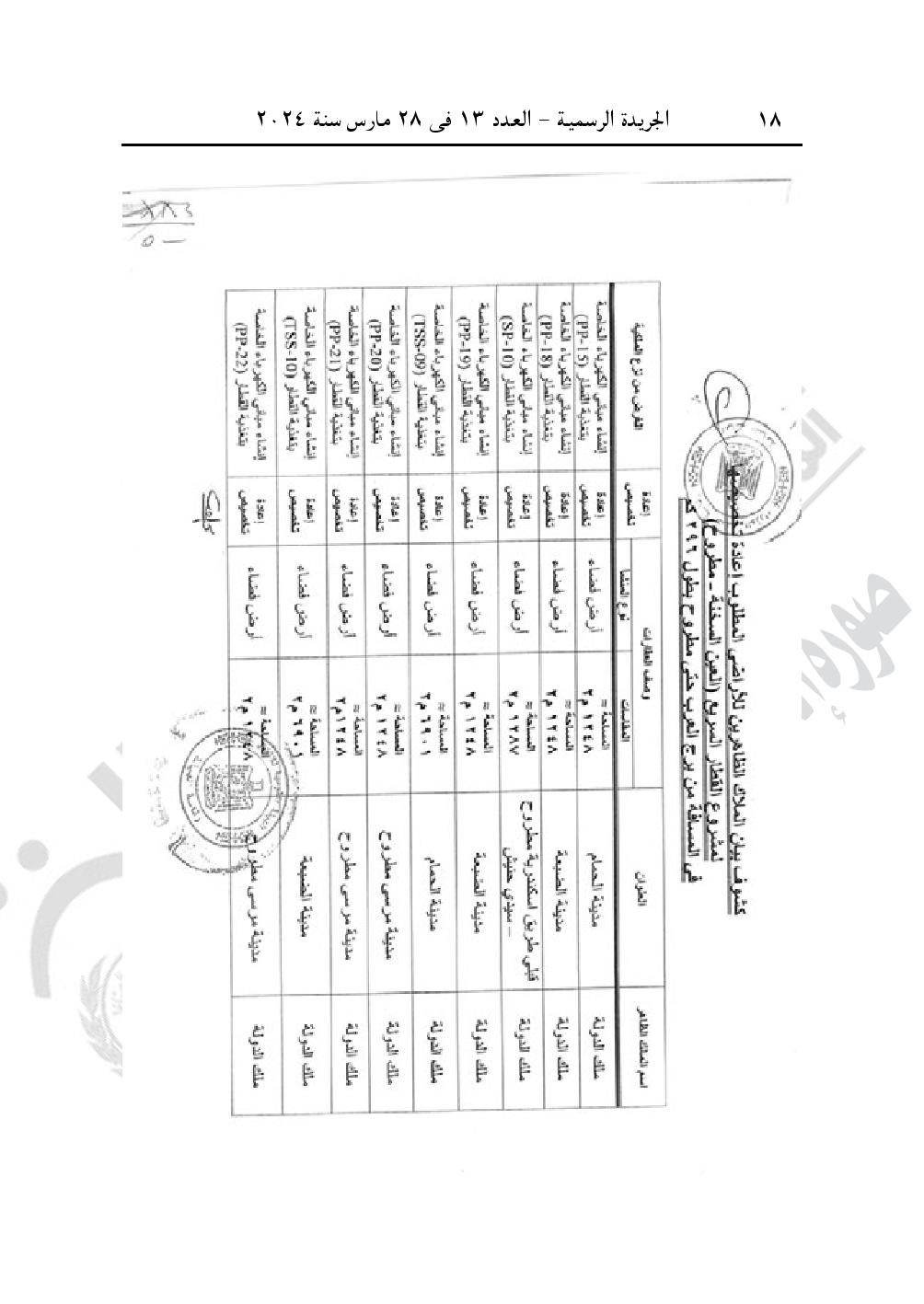 -قـرار رئيـس مجلـس الـوزراء رقم 473 لسنة 2024، بأن يضاف إلى أعمال المنفعة العامة الصادر بشأنها قرار رئيس مجلس الوزراء رقم 3168، لسنة 2021 المعدل بالقرارات أرقام 1314، و4502 لسنة 2022، و1563 لسنة 2023، المشار إليها بعض مسطحات الأراضي والعقارات اللازمة لتعديل بعض مواقع محطات الكهرباء وإنشاء محطة استاد الجيش بالخط الأول للقطار الكهربائي السريع في نطاق محافظتى الإسكندرية ومطروح، وذلك على النحو الموضح بالمذكرة الإيضاحية والخرائط المساحية والكشفين وكروت الوصف المرفقة.