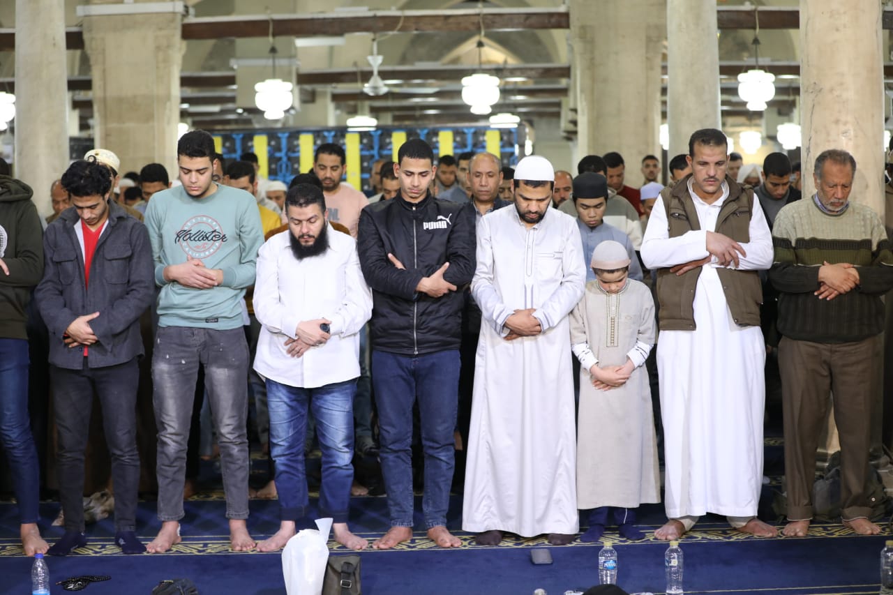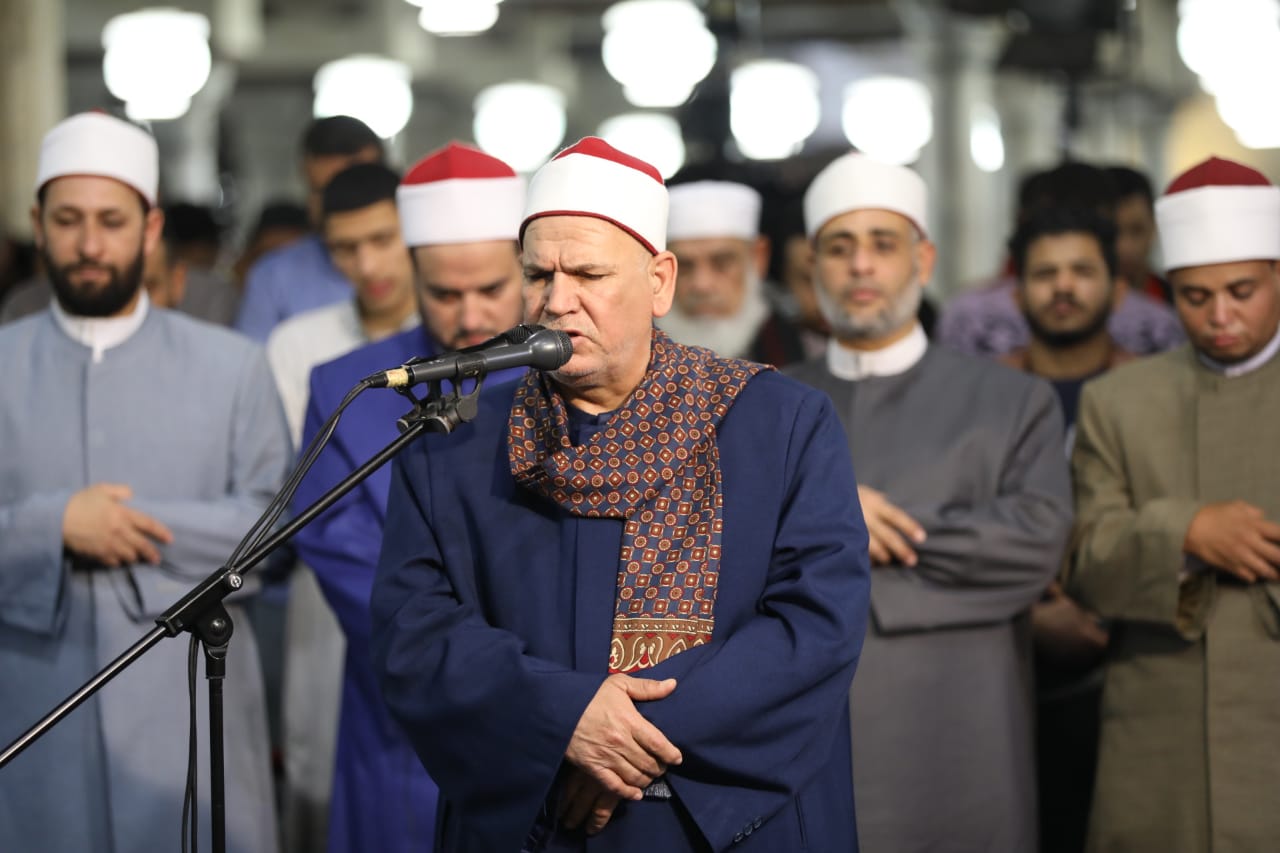 وتقدم المصلين الدكتور نظير عياد، الأمين العام لمجمع البحوث الإسلامية، والدكتور عبد المنعم فؤاد، المشرف العام على الأنشطة العلمية بالجامع الأزهر، والدكتور هاني عودة، مدير عام الجامع الأزهر، وجمعٌ من علماء الأزهر، وتقام صلاة العشاء الليلة من سورة الفرقان برواية حفص عن عاصم، وتقام صلاة التراويح من سورتي الفرقان والشعراء، برواية خلف العاشر، وورش عن نافع المدني، ورويس عن يعقوب الحضرمي.
