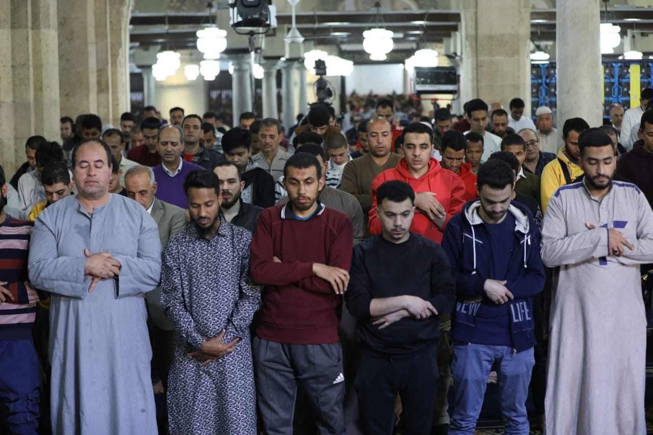 آلاف المصلين من مختلف الجنسيات يشهدون صلاتي العشاء والتراويح بالجامع الأزهر (صور)