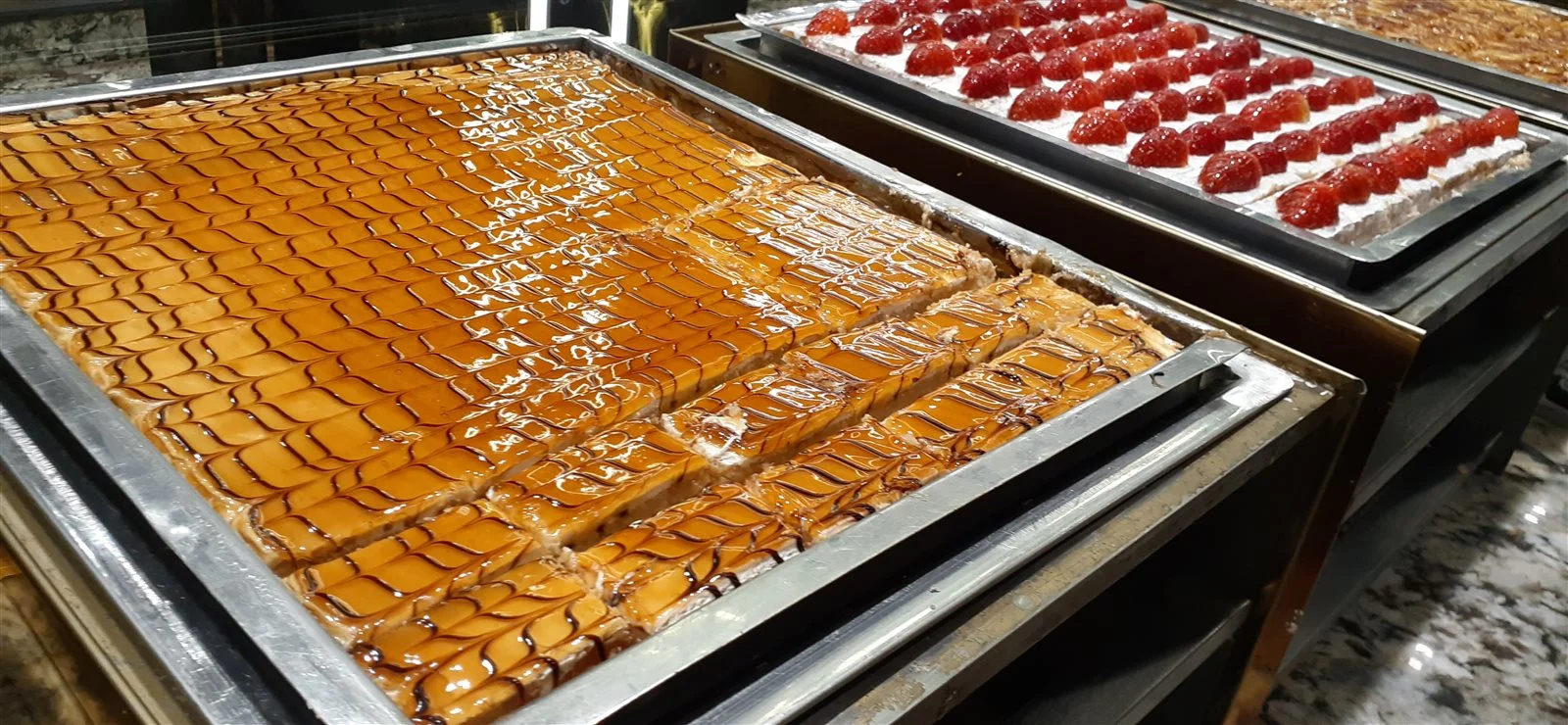 وأضاف أيضا أن المدلعة عبارة عن طبقة كنافة وبسبوسة وبينهما قشدة ويجري تغطيتها بصوص الكراميل والشيكولاتة والمكسرات، مشيرًا إلى أن سر الطعم في الخامات المستخدمة وطريقة الصنع.