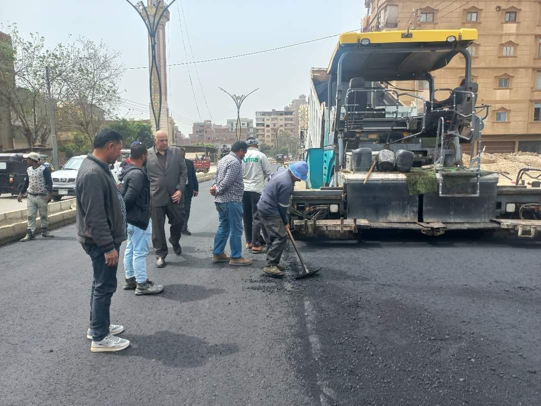 كما تابع أعمال الرصف بشارع جسر النيل بطول 2 كيلو متر من الطريق السريع حتى ميدان العروبة، ومتابعة أعمال تركيب البلدورات بجانبي ومنتصف الطريق.