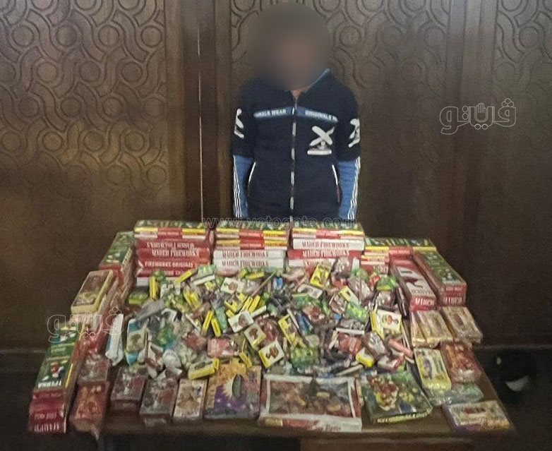 وتم ضبط سائق – مقيم بدائرة قسم شرطة ثان العريش بمحافظة شمال سيناء وبحوزته (27400 قطعة ألعاب نارية مختلفة الأشكال والأحجام وتم إتخاذ الإجراءات القانونية.