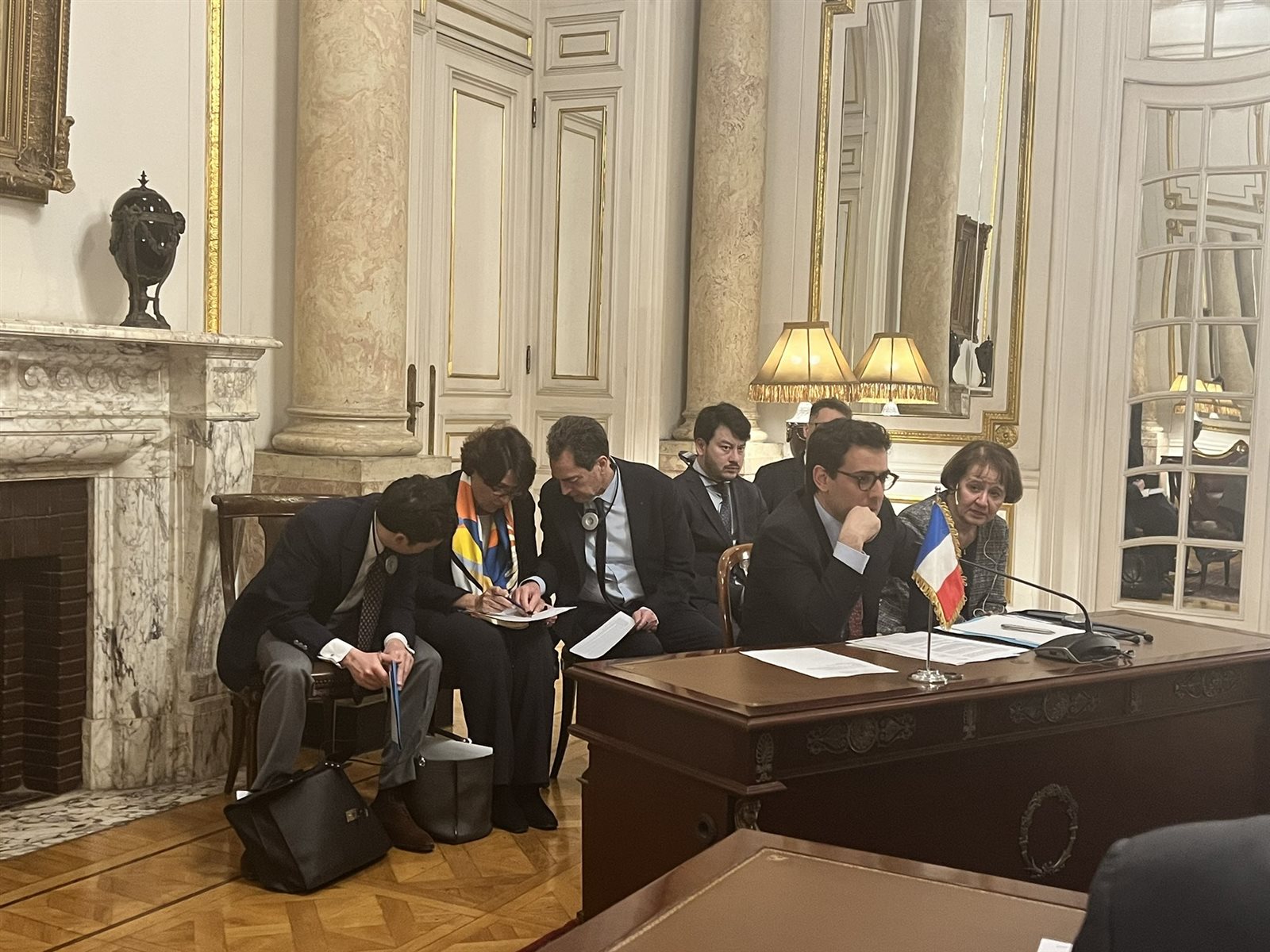 جلسة مباحثات ثلاثية بين وزراء خارجية مصر وفرنسا والأردن بشأن غزة (صور)
