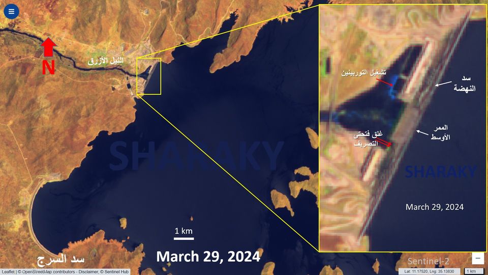 وحول تحليله لهذه الصور قال الدكتور عباس شراقي أستاذ الجيولوجيا والموارد المائية بجامعة القاهرة، إنه بدأ العمل فى تعلية الممر الأوسط بعد تجفيفه فى 18 ديسمبر الماضي حتى وصل إلى منسوب 630 مترًا فوق سطح البحر، ويتبقى عشرة أمتار، وتصل نسبة الأعمال الإنشائية إلى حوالي 97%، بينما هناك تأخر كبير في تركيب التوربينات العلوية التي لم ينته أي منها حتى اليوم، ويمكن تقدير ما تم بحوالي 60% كهربائيًّا، بمتوسط عام حوالي 78%، ومن المتوقع الانتهاء منها خلال عامين.