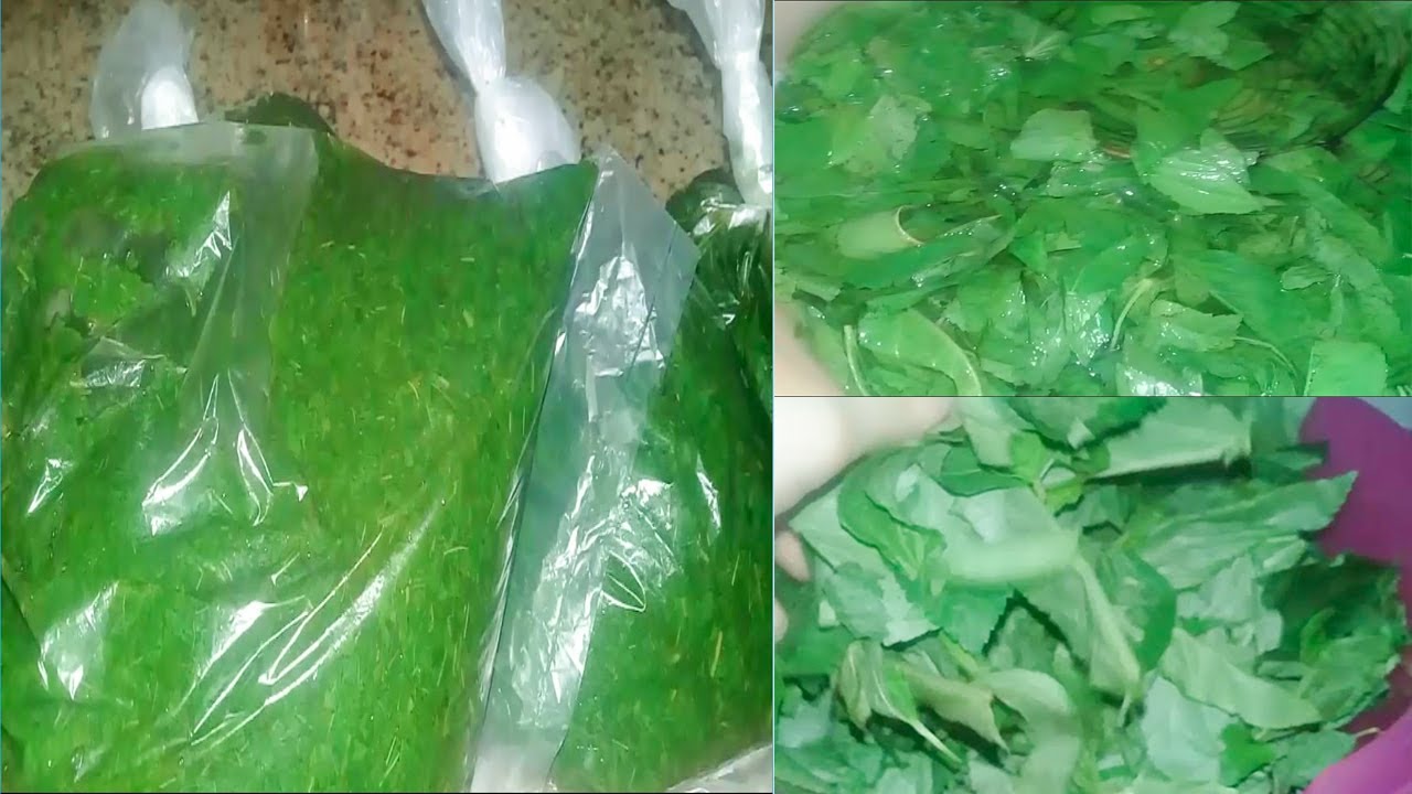 الطريقة الأولى لتخزين الملوخية الخضراء