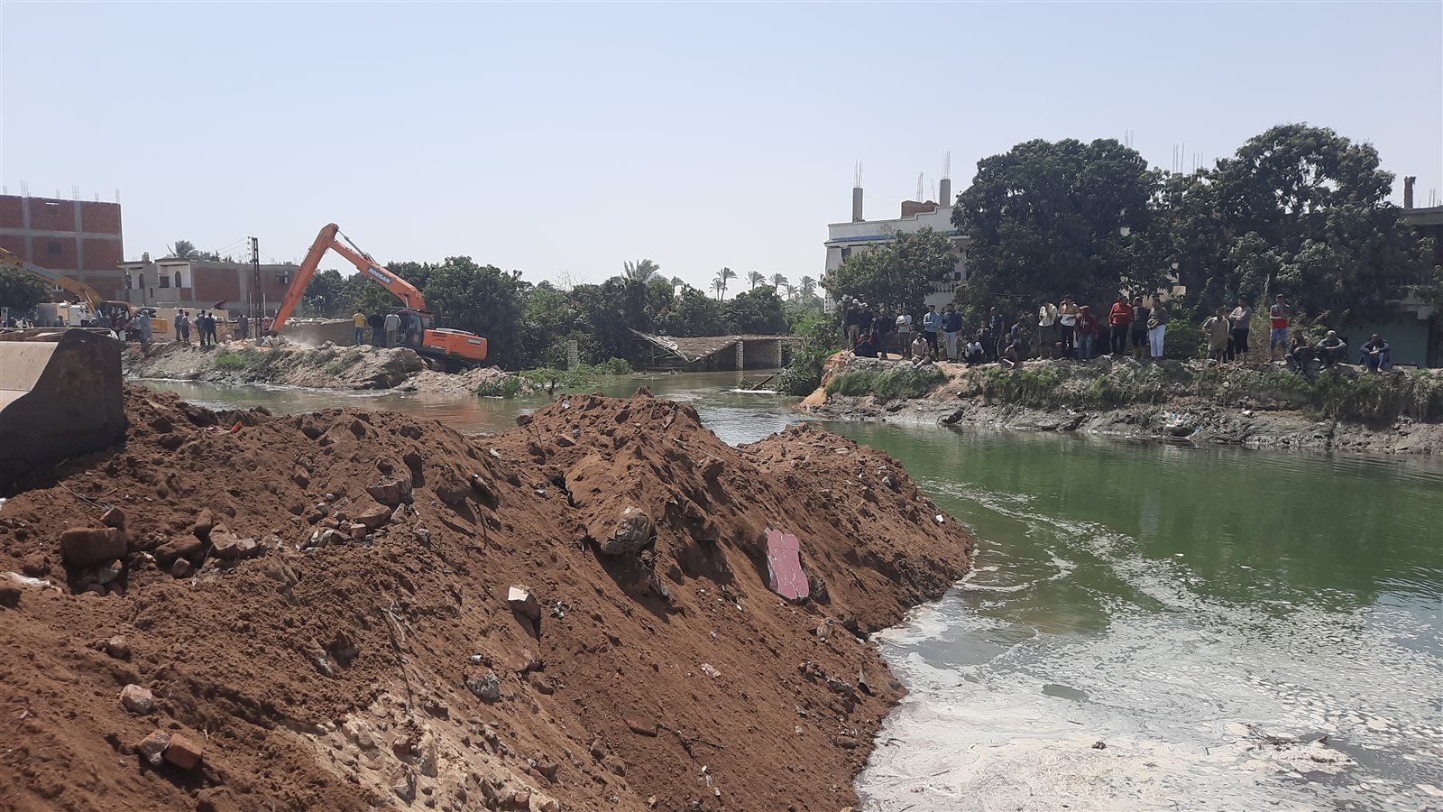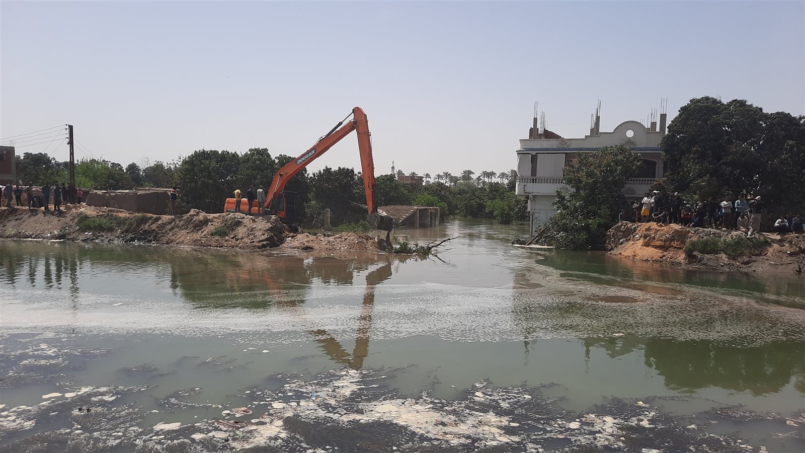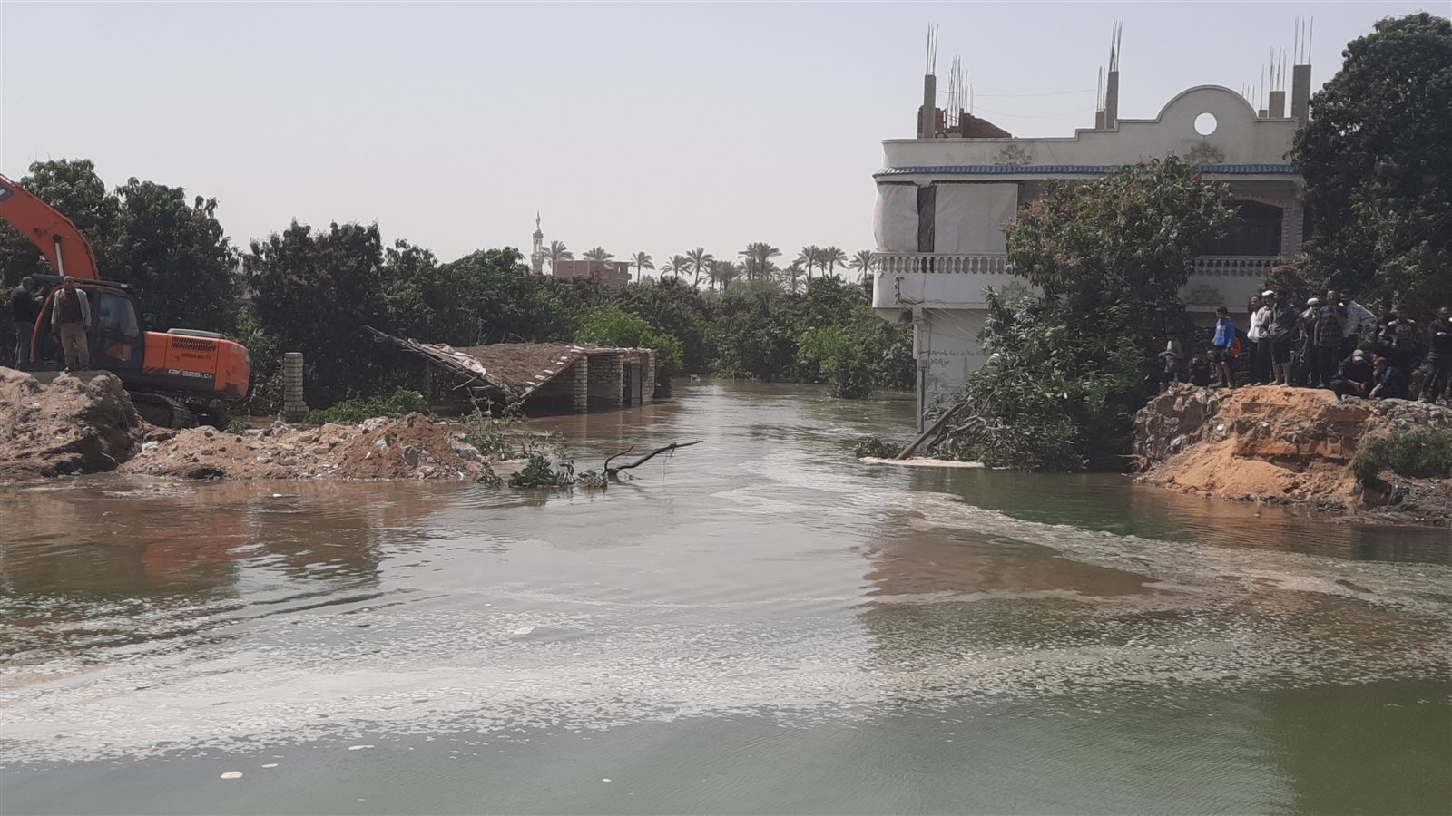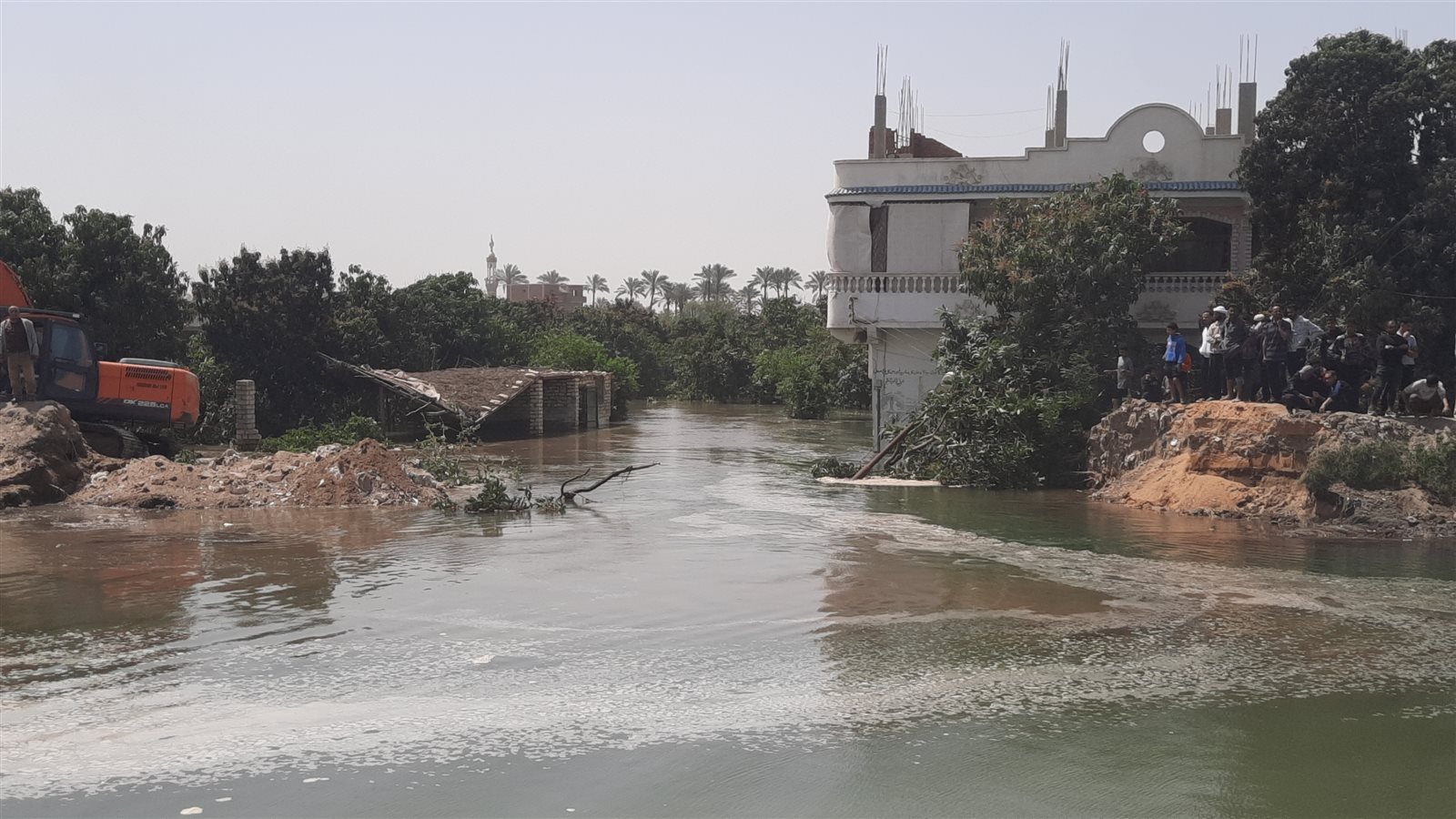 وشهدت قرية عين غصين في محافظة الإسماعيلية، قبل قليل انهيار جزئي لإحدى جوانب الترعة مما اسفر إلى غرق الأراضي الزراعية وعدد من المنازل.