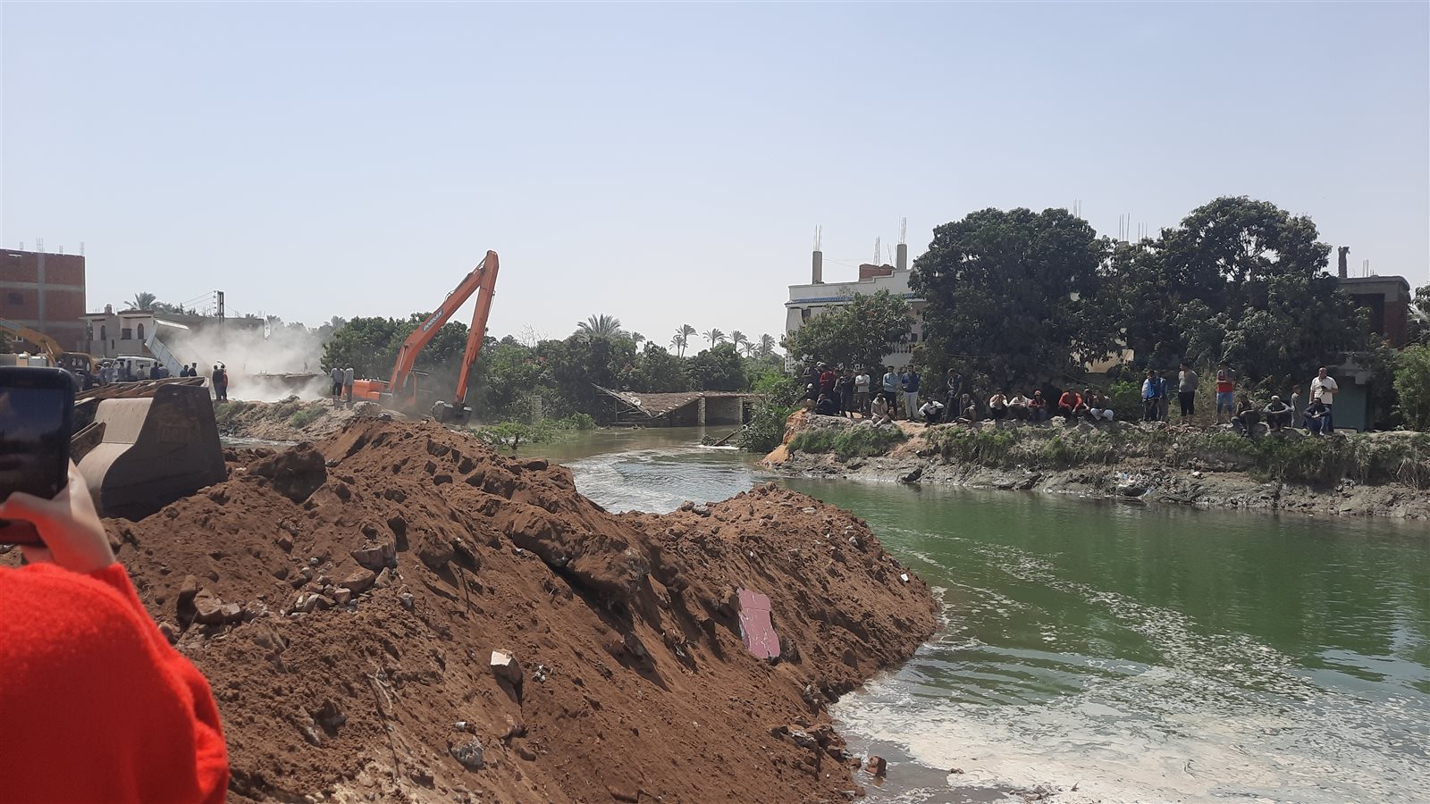الدفع بعشرات اللوادر للسيطرة على حادث انهيار جسر ترعة السويس بالإسماعيلية (فيديو)