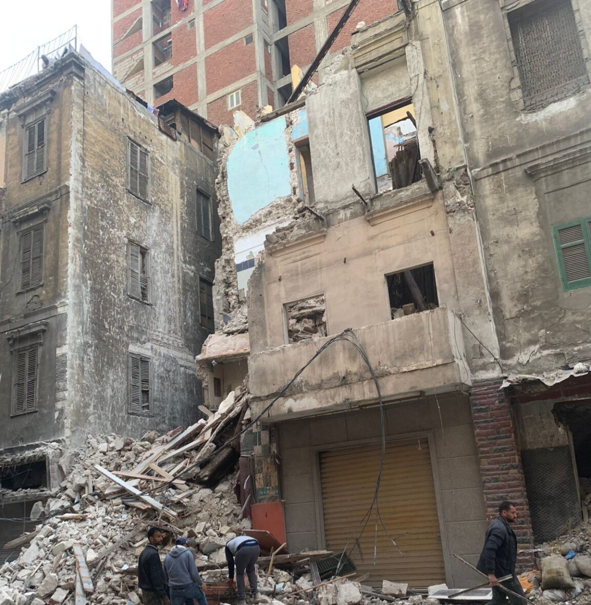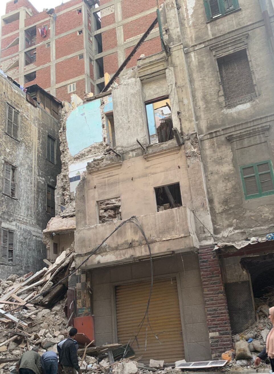 تلقت مديرية أمن الإسكندرية، إخطارًا من قسم العطارين يفيد بورود بلاغ بانهيار أجزاء كبيرة عقار مكون من اربع طوابق بشارع العطارين الرئيسي خالى من السكان والتابع لحي وسط.