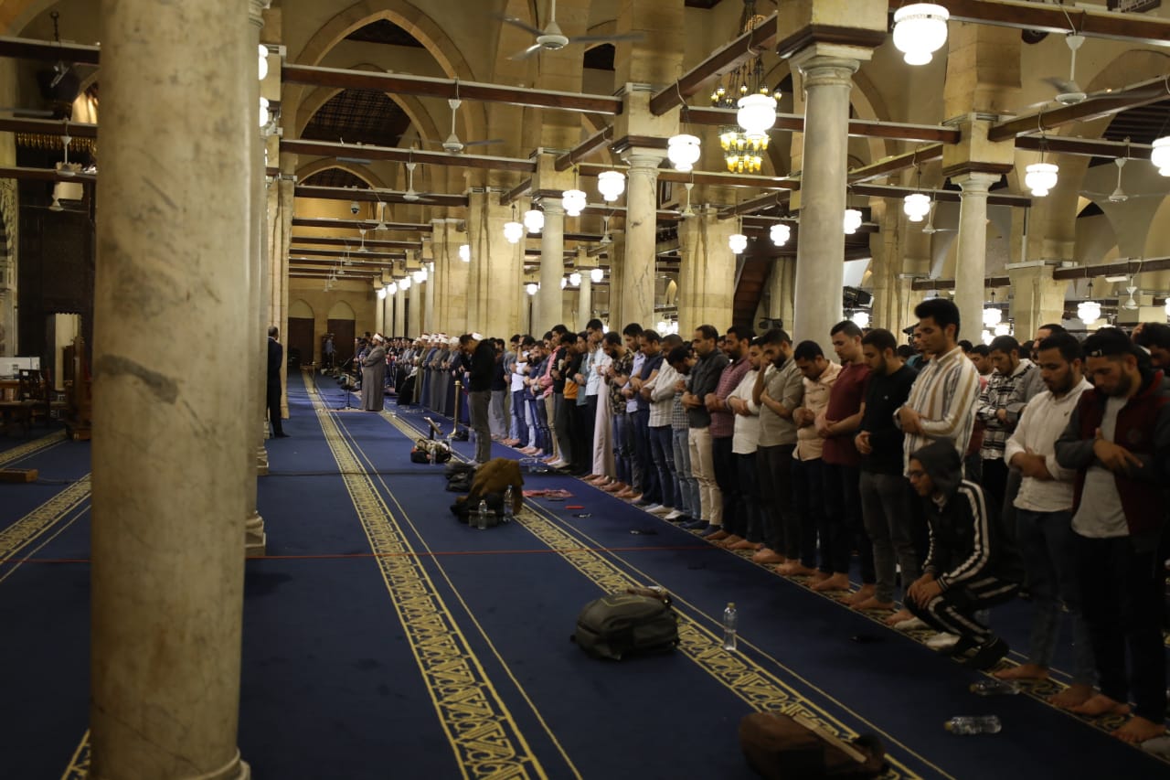 آلاف المصلين يشهدون صلاتي العشاء والتراويح بالجامع الأزهر (صور)