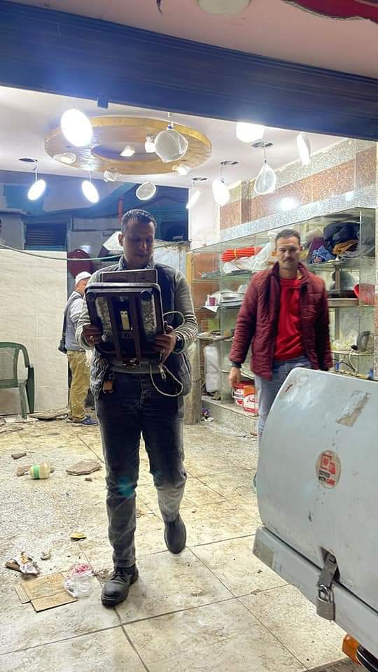 إيقاف أعمال تشطيب محل مخبوزات بدون تصريح وإزالة مبنى مخالف في العمرانية (صور)