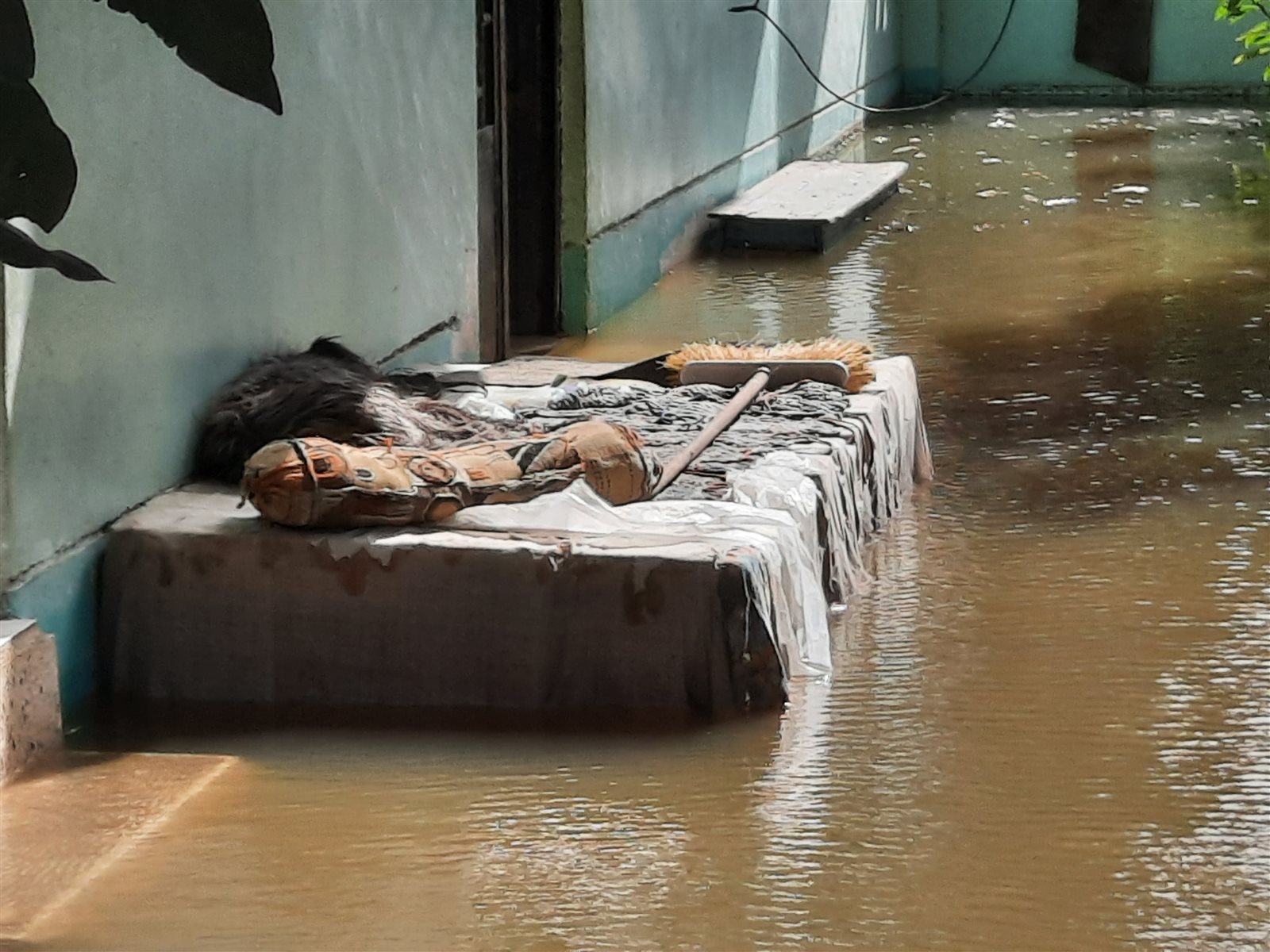 انهمرت دموع تلك السيدة ليس من أجل شكارة الدقيق فقط بل من أجل منزلها الذى ابتلعته المياه وأغرقت كافة الأجهزة الكهربائية به وكافة محتوياته فلا فرش ولا أثاث.
