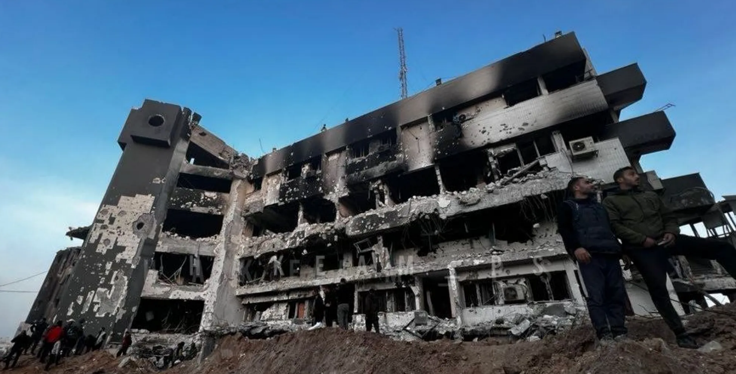 وأحرق جيش الاحتلال المباني بمجمع الشفاء الطبي بمدينة غزة خلال حصاره لمدة أسبوعين.