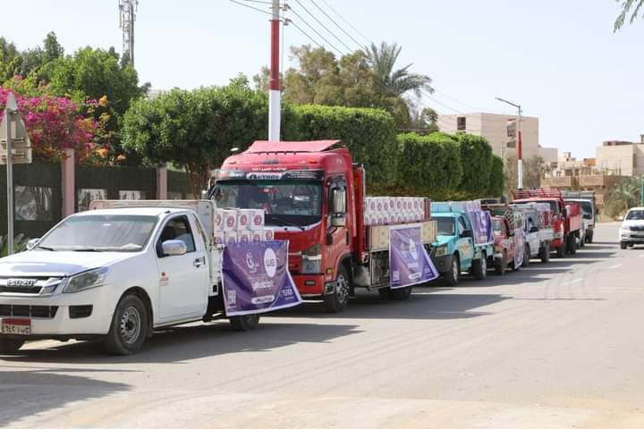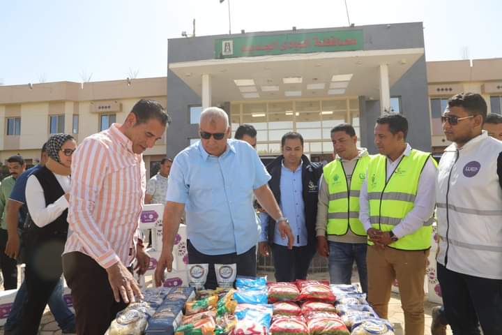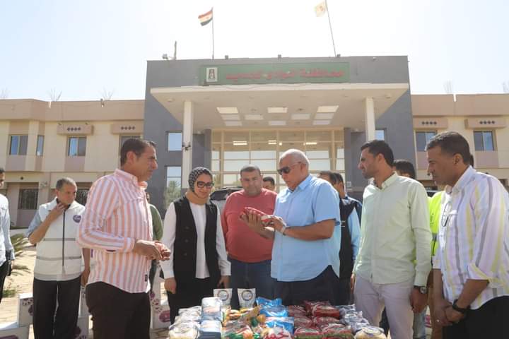 تشمل 3 آلاف كرتونة مواد غذائية، محافظ الوادي الجديد يدشن قافلة مساعدات غذائية