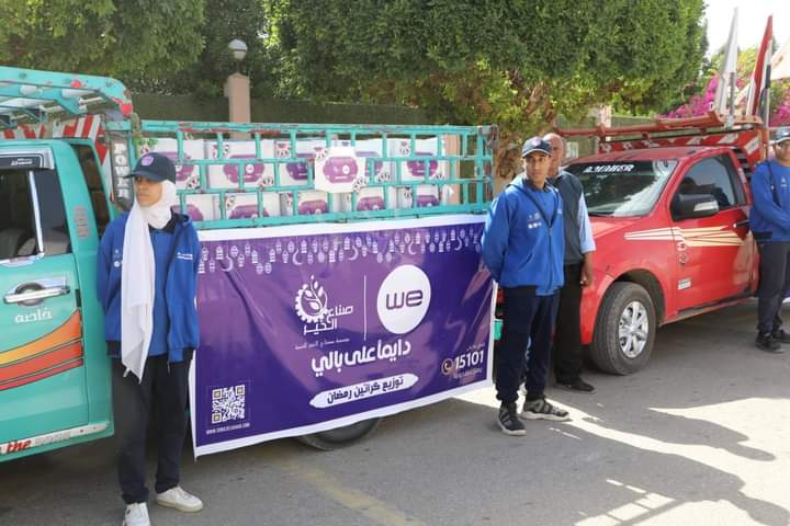 دشن اللواء دكتور محمد الزملوط محافظ الوادي الجديد، وحنان مجدي نائب المحافظ، اليوم، قافلة المساعدات الغذائية المُقدمة من مؤسسة صناع الخير للتنمية، تحت مظلة التحالف الوطني للعمل الاهلي التنموي، بالتعاون مع الشركة المصرية للاتصالات WE، وذلك في إطار حملة توزيع ٣٠٠٠ كرتونة مواد غذائية علي الأسر الأولى بالرعاية خلال شهر رمضان المبارك، بحضور محمد منير مدير عام التضامن الاجتماعي والدكتور محمد عبدالجليل نائب المدير التنفيذي لمؤسسة صناع الخير.