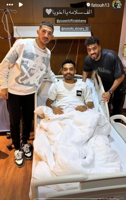 الزمالك، حرص ثنائي الفريق الأول لكرة القدم الزمالك أحمد فتوح ومصطفى الزناري على زيارة زميلهم بالفريق الأبيض يوسف أوباما داخل المستشفى للاطمئنان على حالته الصحية بعد إجراء جراحة في الفك.