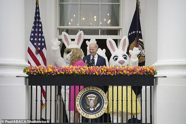 من جانب آخر، وبمناسبة عيد الفصح، ارتدى شخصان زي أرنب، وهي عادة سنوية، وظهرا برفقة الرئيس الأمريكي جو بايدن وزوجته في شرفة البيت الأبيض بحضور أكثر من 40 ألف شخص في الحديقة الجنوبية للبيت الأبيض.