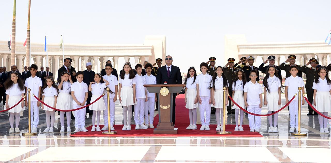 وعقب ذلك، رفع الرئيس عبد الفتاح السيسي، علم مصر على أطول سارية في العالم بساحة الشعب بالعاصمة الإدارية؛ إيذانا بافتتاح المرحلة الأولى من العاصمة الإدارية.