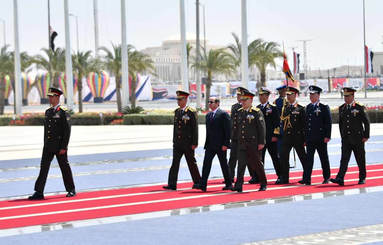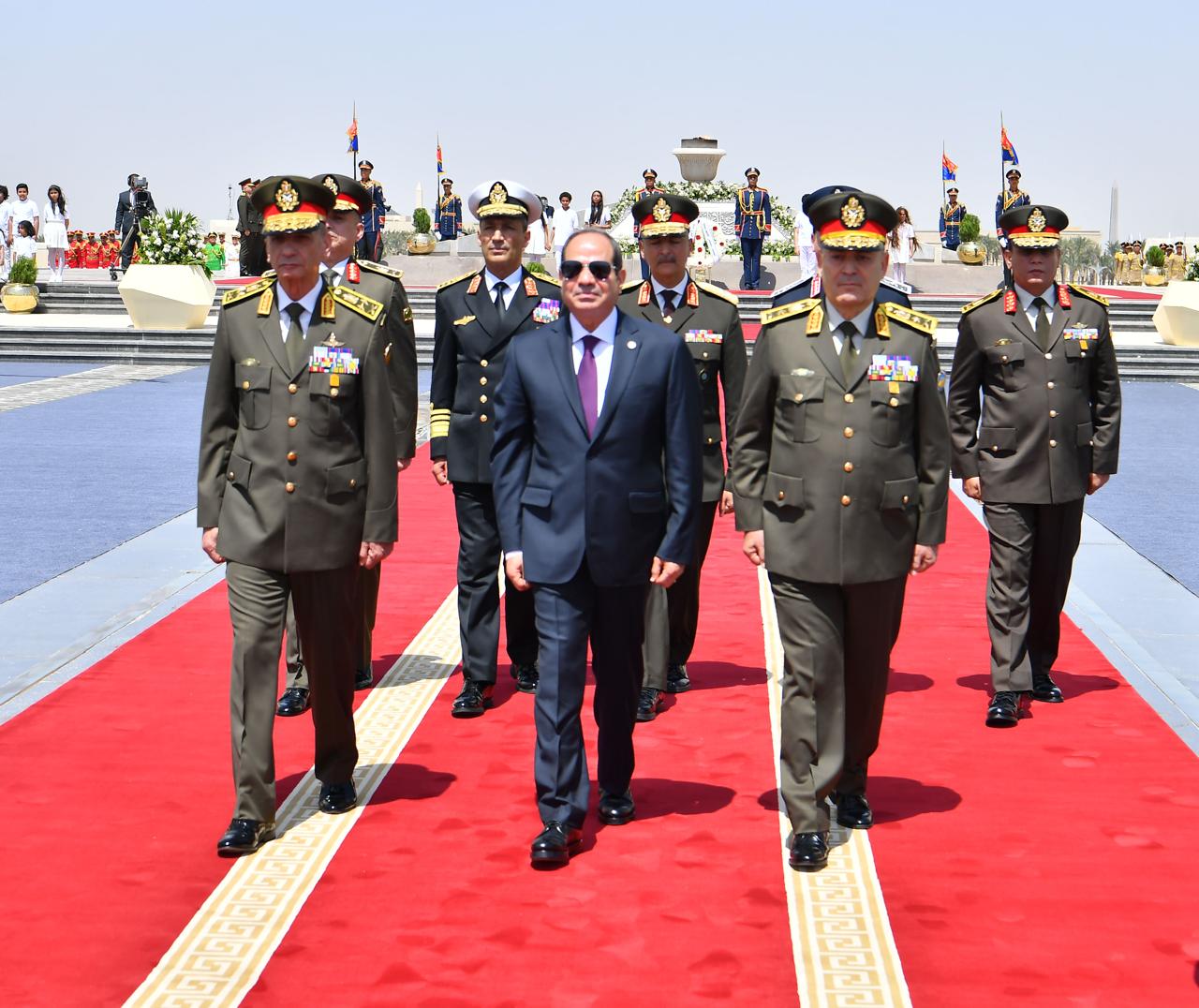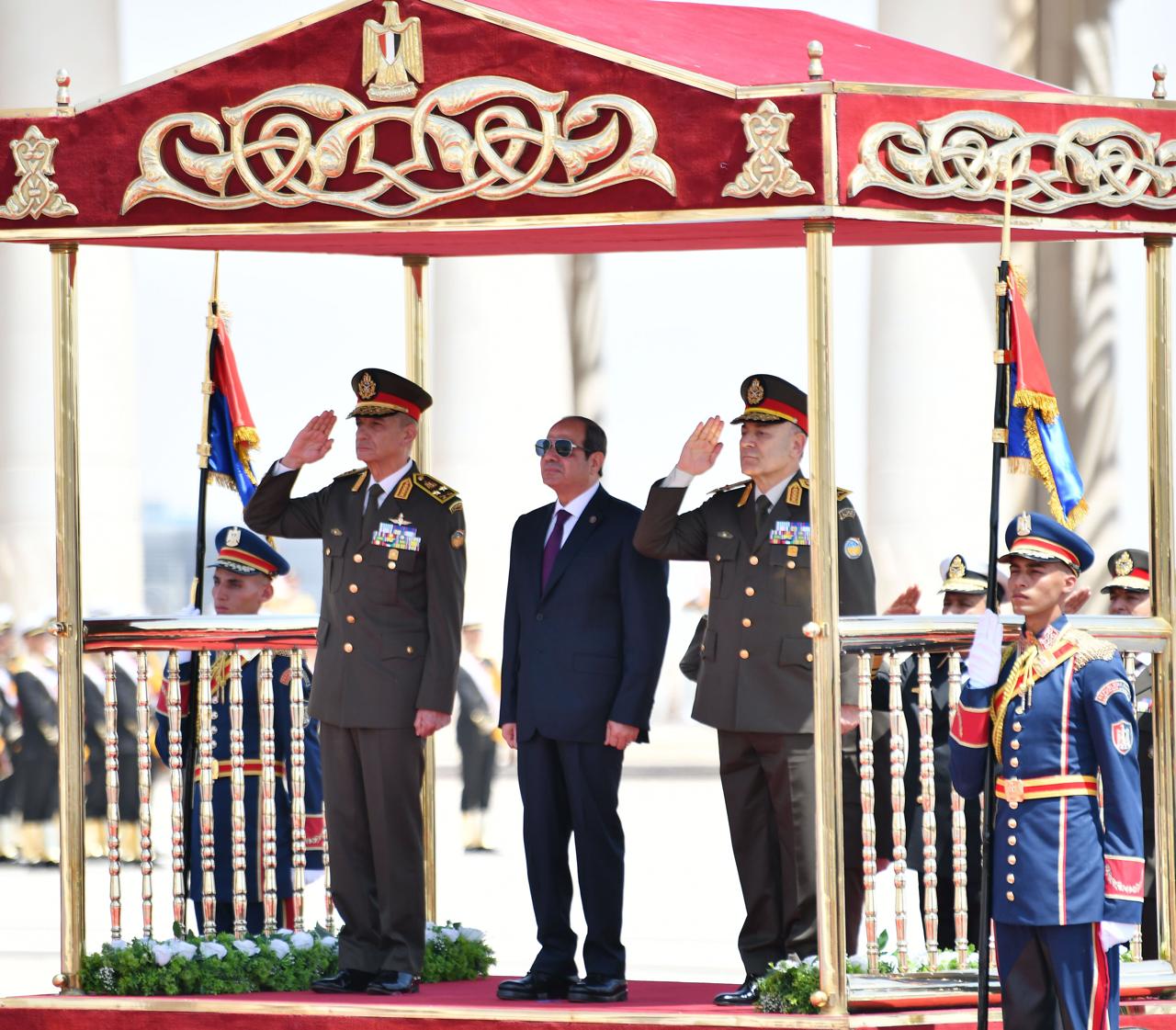 ورافق الرئيس كل من وزير الدفاع والإنتاج الحربي الفريق أول محمد زكي، والفريق أسامة عسكر رئيس أركان حرب القوات المسلحة، وقادة القوات المسلحة.
