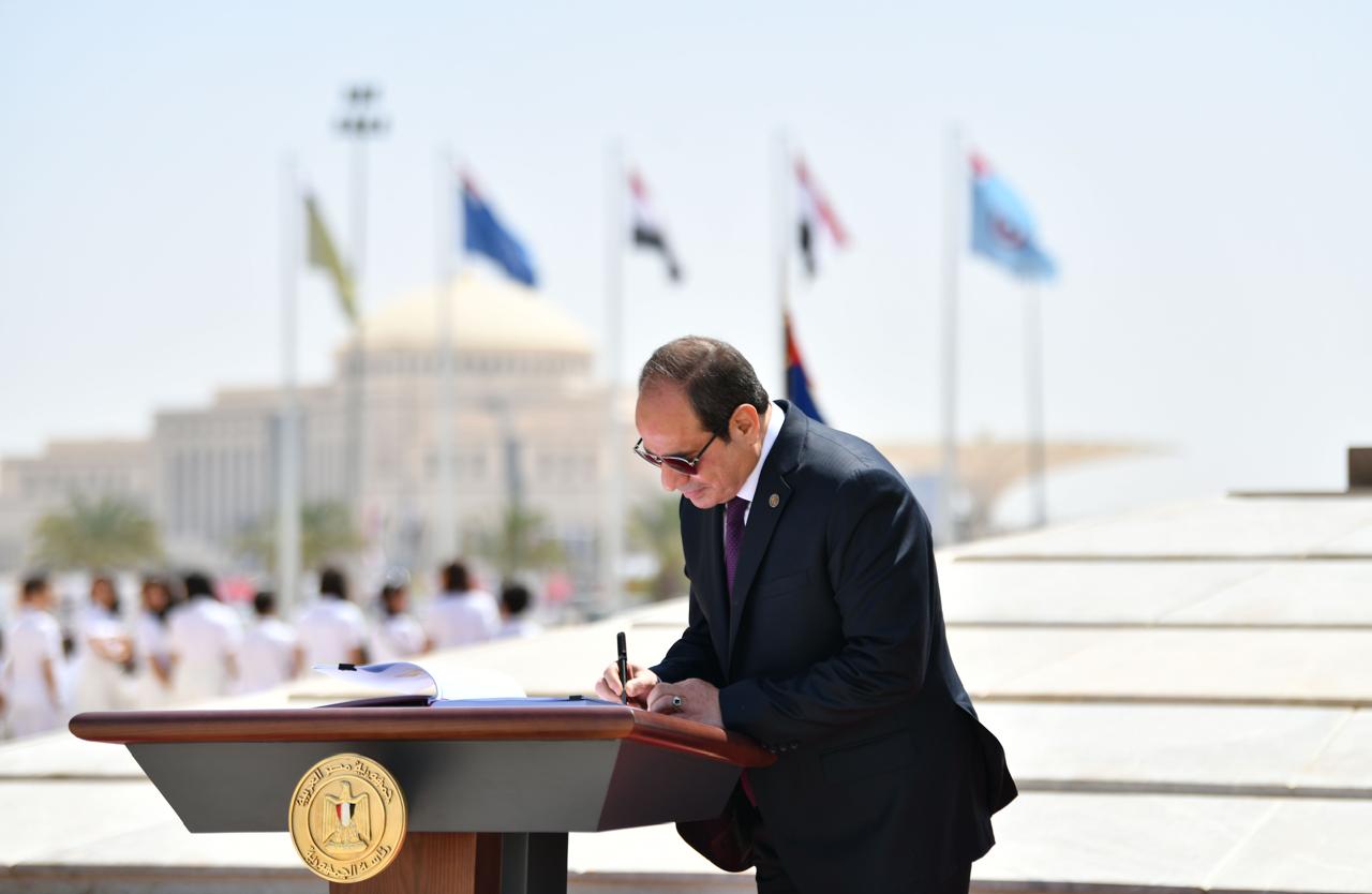 كما وقع الرئيس السيسي في سجل الشرف بالنصب التذكاري.