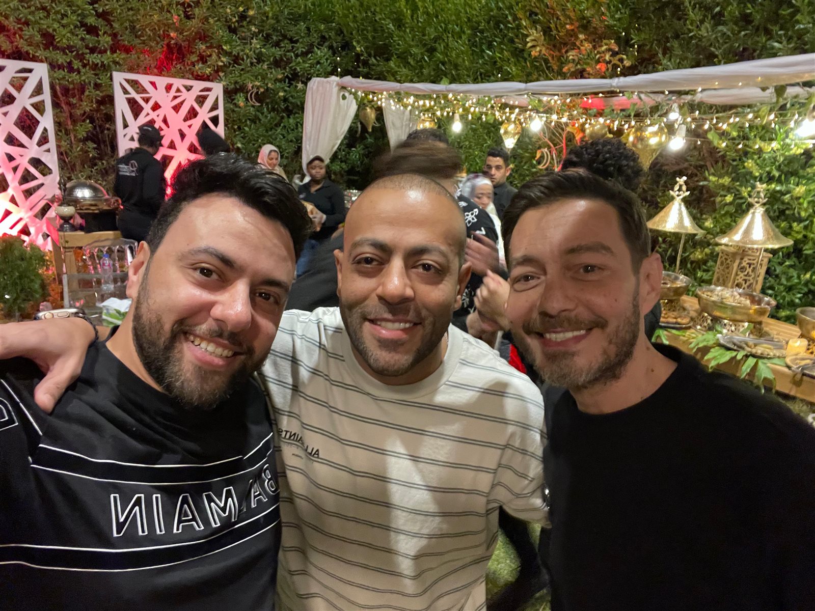 وحرص الملحن مدين على دعوة أصدقائه من الوسط الفني على الإفطار في منزله، وحرص على الحضور: تامر عاشور وأحمد زاهر ومحمد جمعة ومي فاروق وخطيبها محمد العمروسي وتامر حسين والمطرب أحمد باتشان وأحمد جمال وبهاء الدين محمد ووسام عبد المنعم.