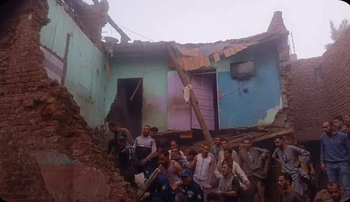 وبالفحص والمعاينة تبين بانهيار منزل مكون من طابقين بقرية بني محمد التابعة إلى مركز أبنوب، مما أسفر عن مصرع طفل وعمه وإصابة 4 آخرين.