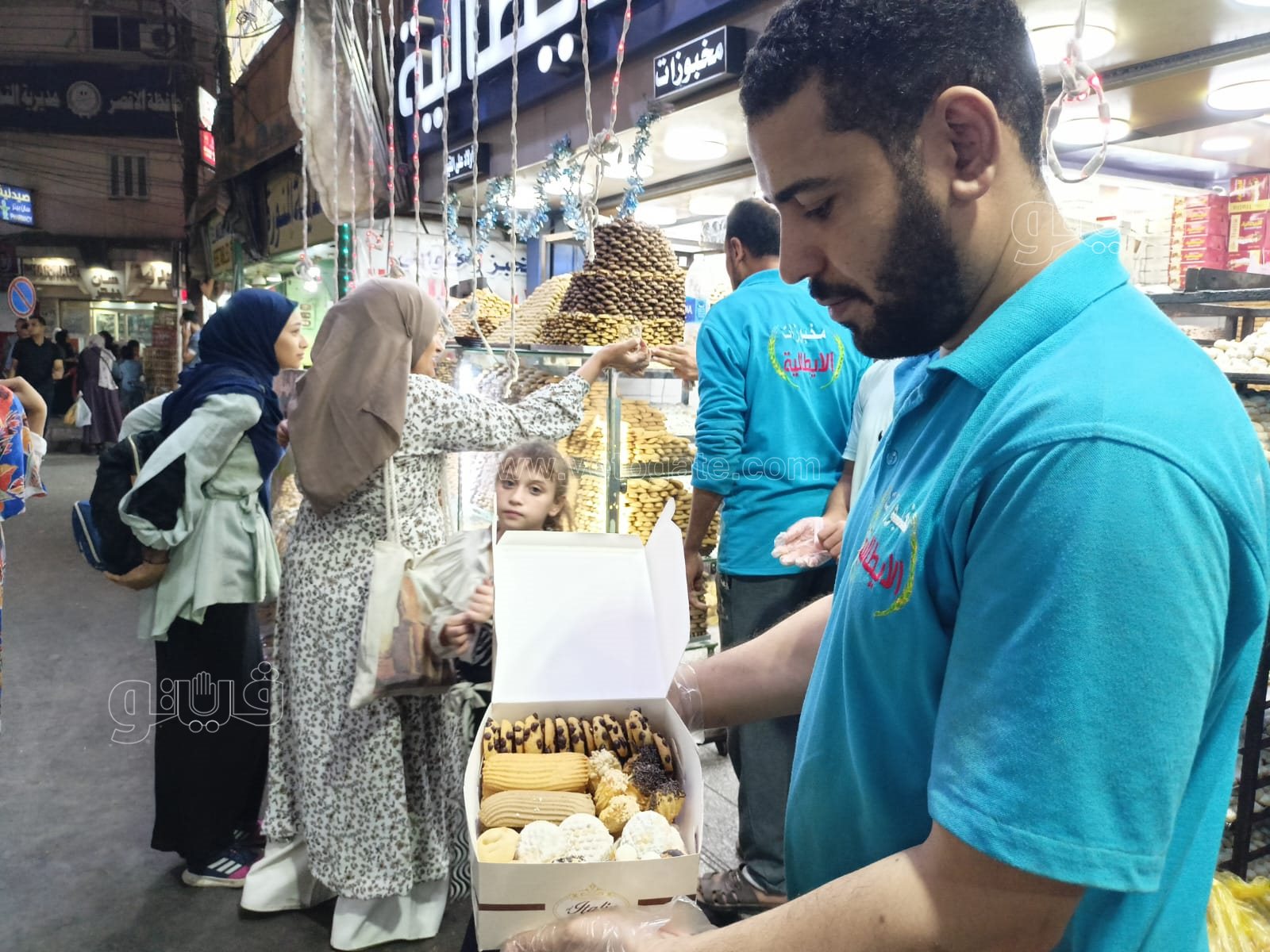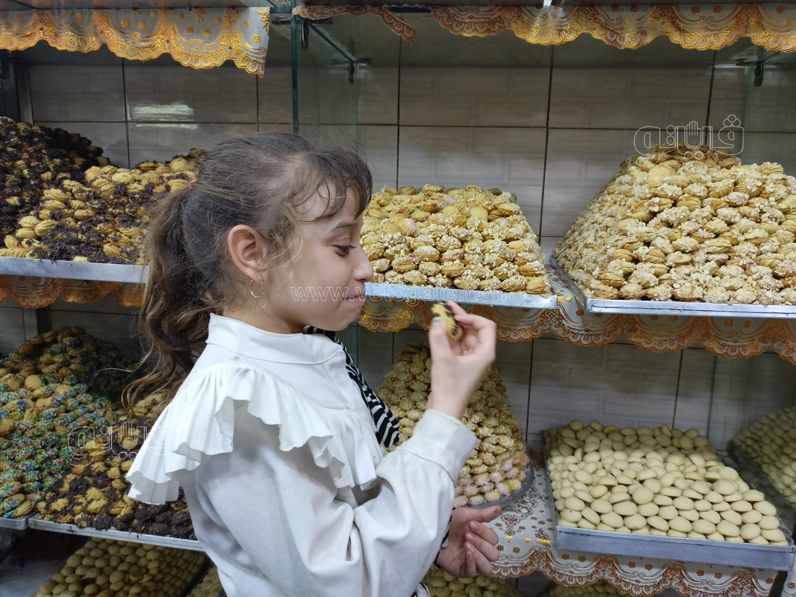 أطفال وفتيات يساعدون أمهاتهم في عمل البسكويت والكحك والبيتفور، وسط أجواء من الفرحة والسعادة التي ترتسم على وجوههم، فترى أصابعهم الصغيرة تنغمس في العجين وتبدأ في تشكيل قطع من الكحك الناعم، ومنهم من يقوم بنقل الصاج إلى الفرن لطهي المخبوزات وسط أجواء أسرية وفرحة كبيرة.