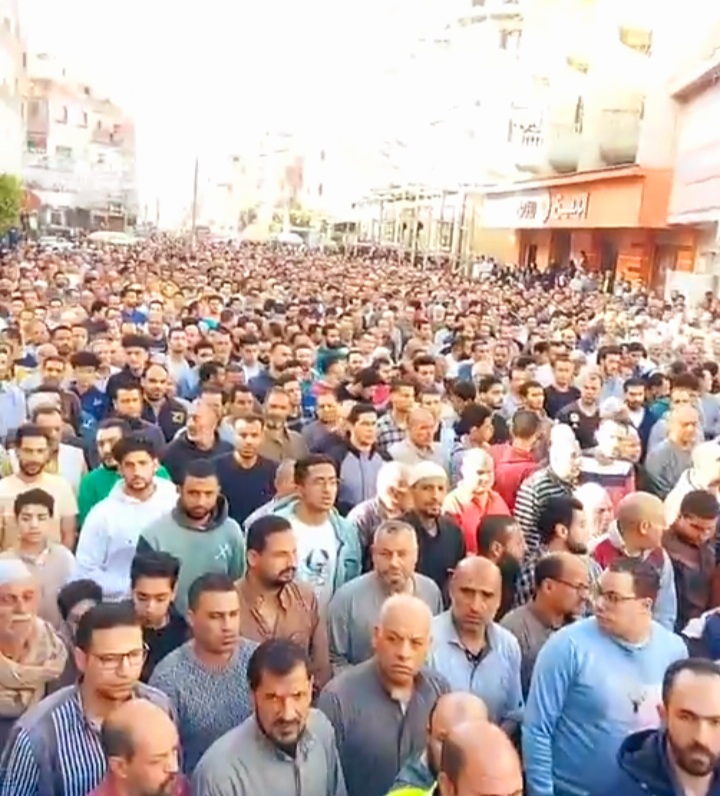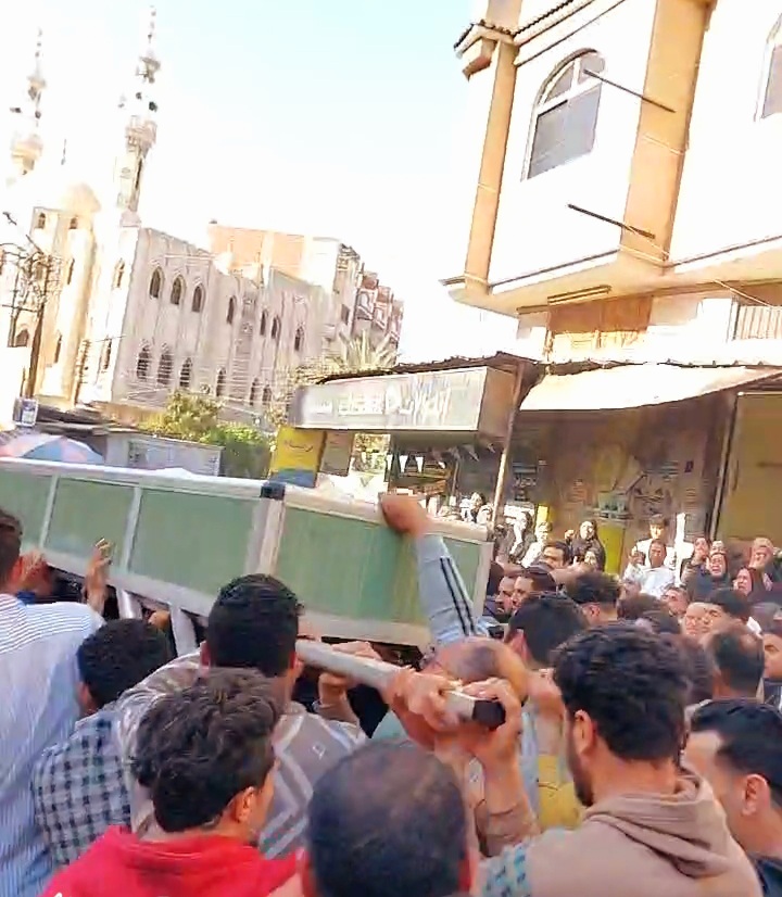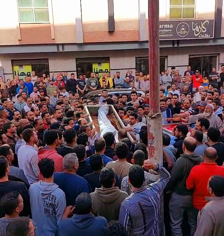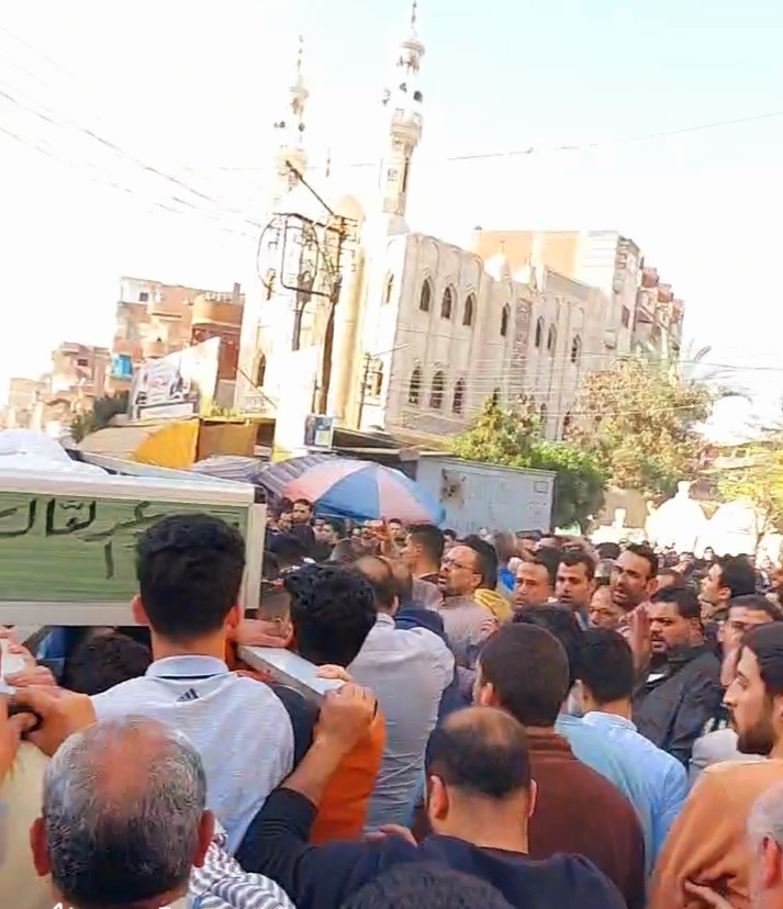 ووقف آلاف الأهالي في محيط المسجد الكبير بالقرية، لتأدية صلاة الجنازة على الراحلين والذين لم يتمكنوا من الدخول إليه من شدة الزحام وبعد انتهاء صلاة الجنازة خرجت جثامين ضحايا الحادث متوجهة لمثواها الأخير، وسط هتافات "الله أكبر، لا إله إلا الله" كما رددت إحدى السيدات "يا حبايبي كنتم أحسن ناس".