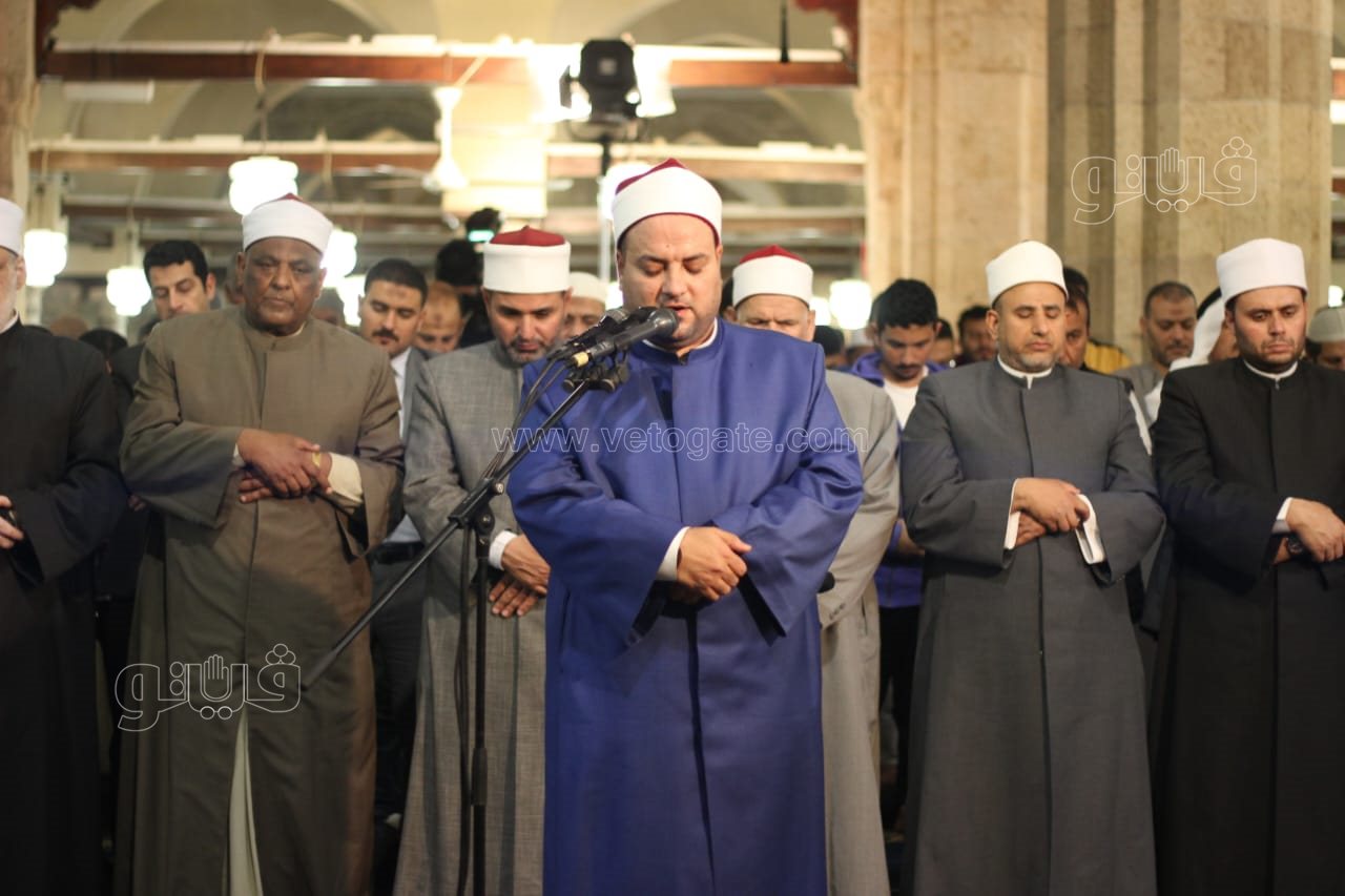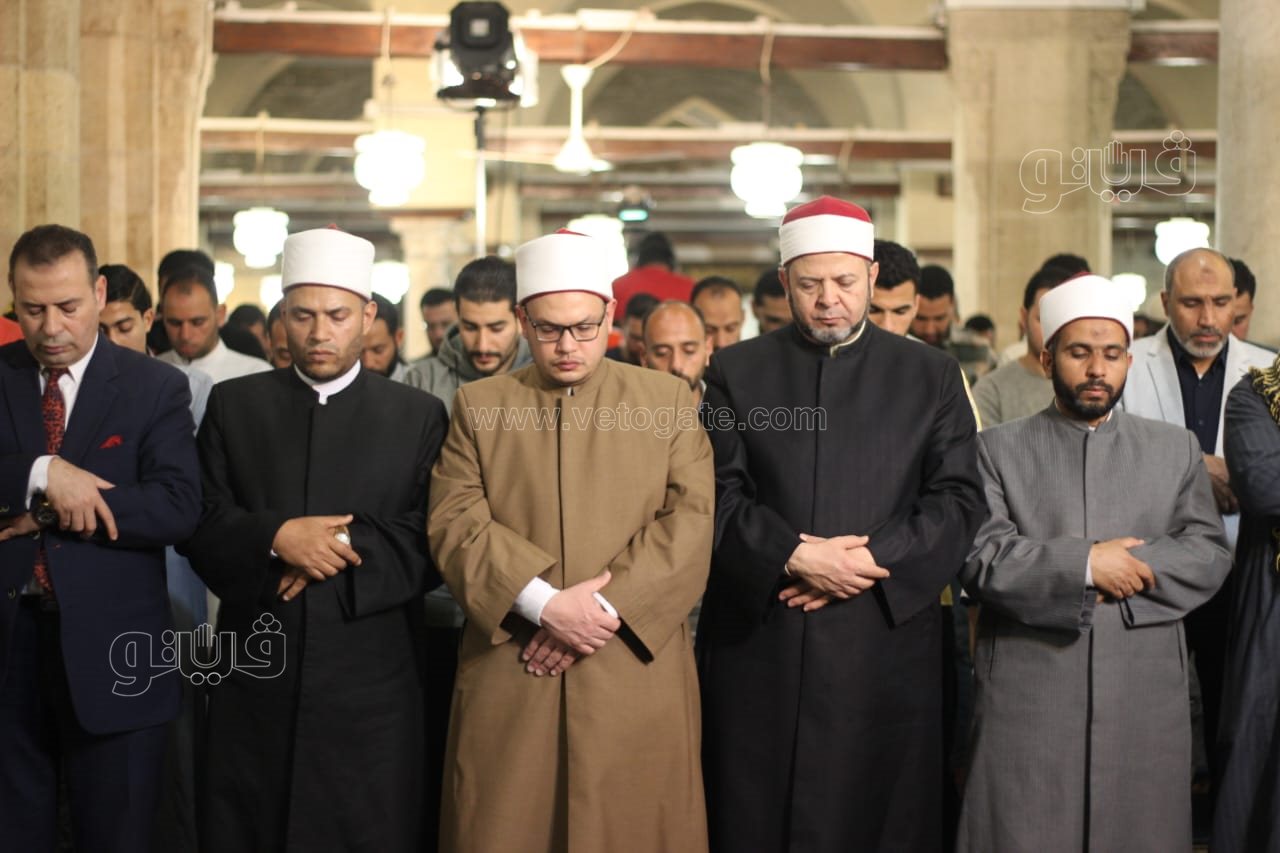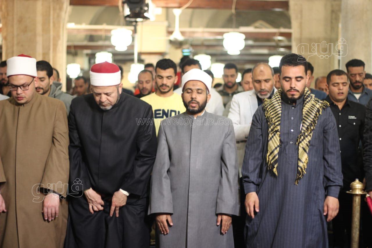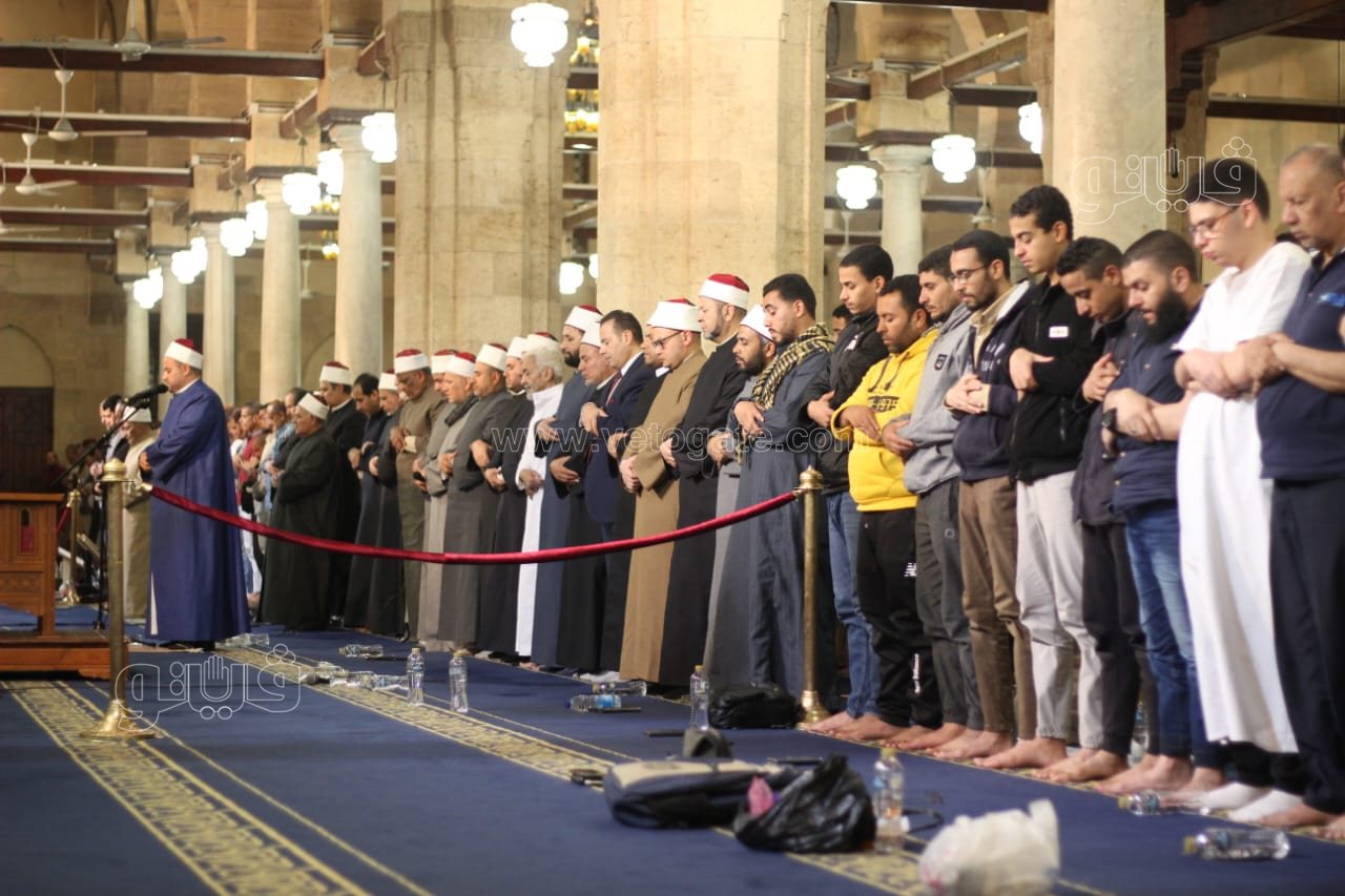 وتقدم المصلين الدكتور محمد الضويني، وكيل الأزهر، والدكتور حسن الصغير، رئيس أكاديمية الأزهر العالمية لتدريب الأئمة والوعاظ، والدكتور عبد المنعم فؤاد، المشرف العام على الأنشطة العلمية بالجامع الأزهر، والدكتور هاني عودة، مدير عام الجامع الأزهر، وجمعٌ من علماء الأزهر، وتقام صلاة العشاء الليلة من سورة الأحزاب، برواية حفص عن عاصم، وتقام صلاة التراويح من سورتي الأحزاب وسبأ، برواية الدوري عن أبي عمرو البصري، وابن ذكوان عن الإمام ابن عامر الشامي، ورويس عن الإمام يعقوب الحضرمي، وتقام صلاة التهجد بآيات من سور النساء والمائدة والأنعام والأعراف، برواية السوسي عن أبي عمرو البصري.