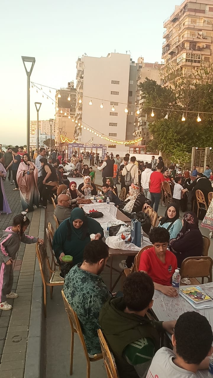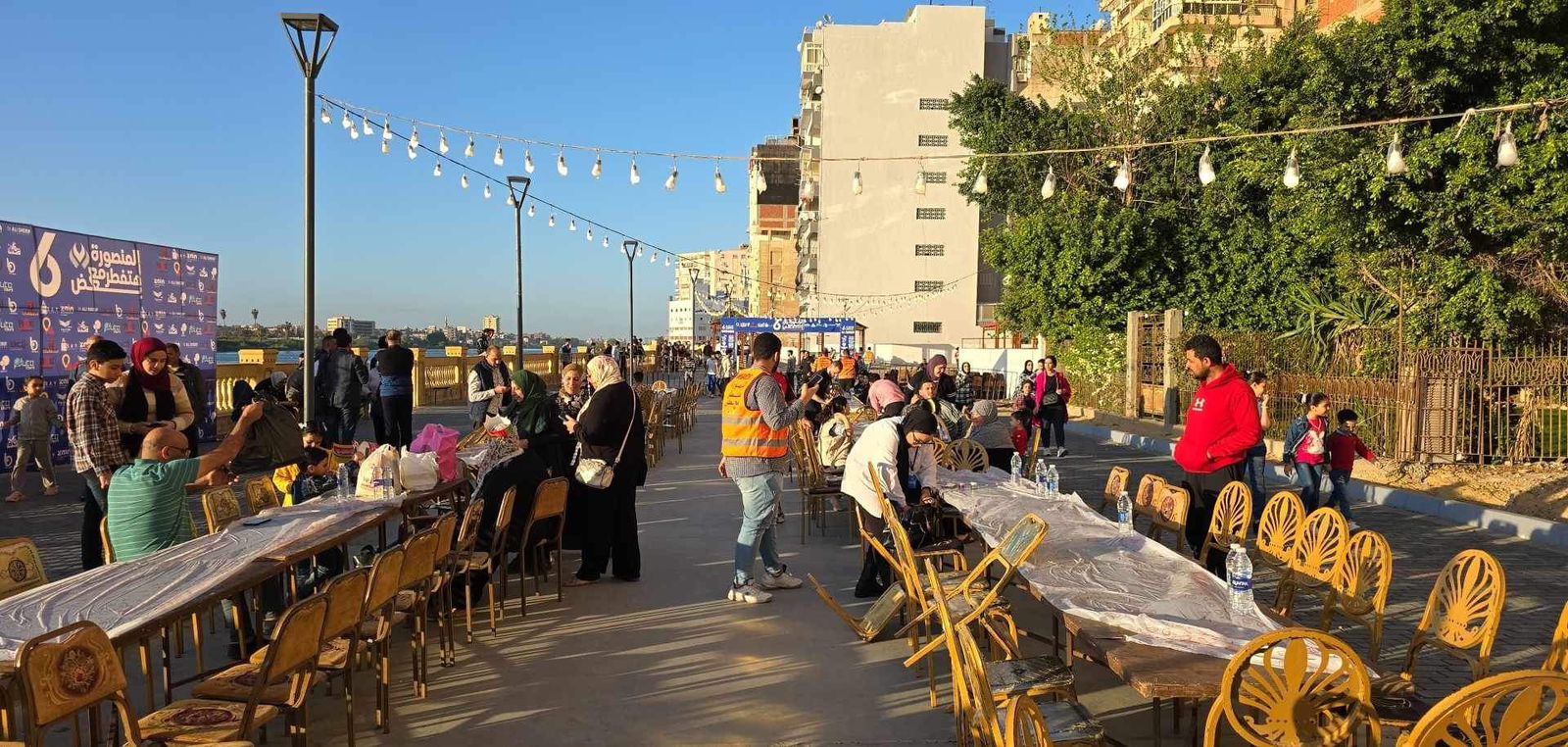 المنصورة هتفطر مع بعض، إقبال كبير على مائدة الممشى السياحي الجديد في الدقهلية