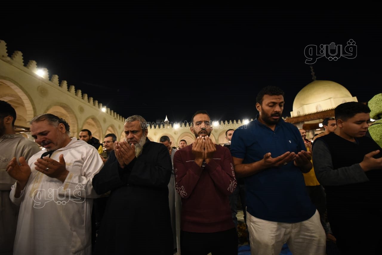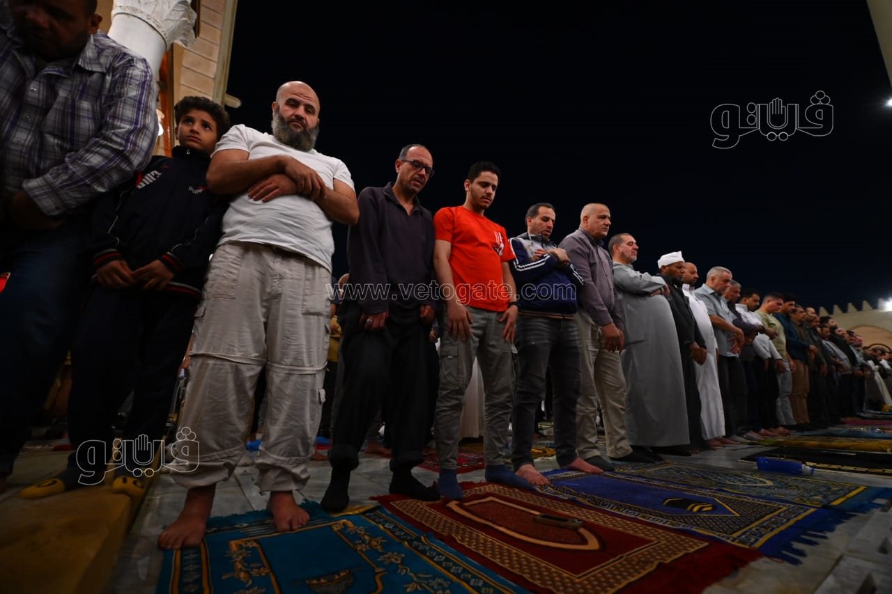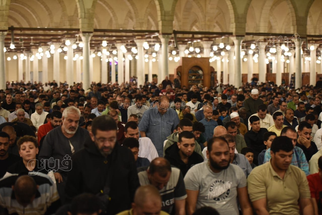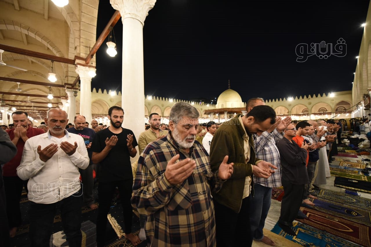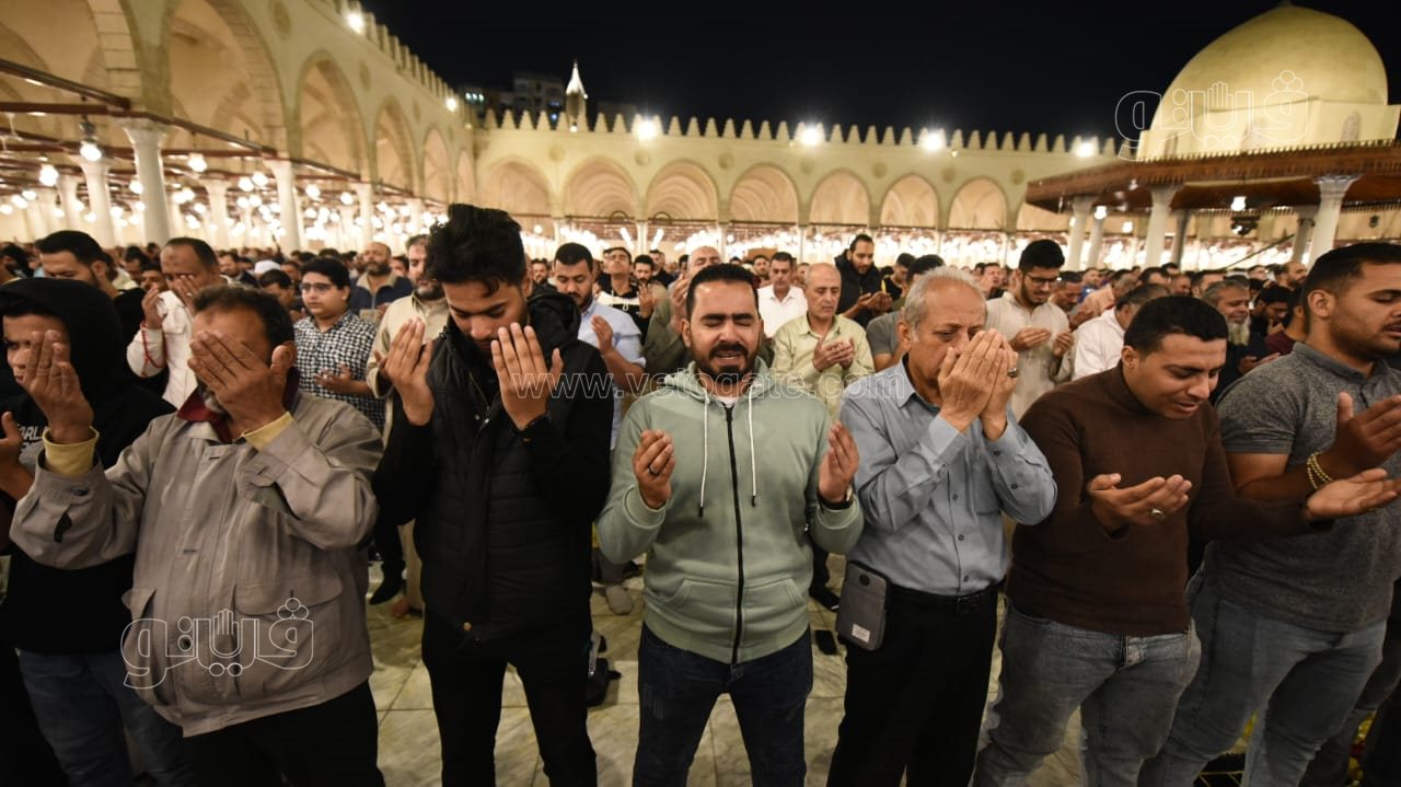 وأدى آلاف المصلين صلاتي العشاء والتراويح في مسجد عمرو بن العاص، في ليلة السابع والعشرين من شهر رمضان، طمعًا في بلوغ ليلة القدر وسط أجواء إيمانية خاصة.