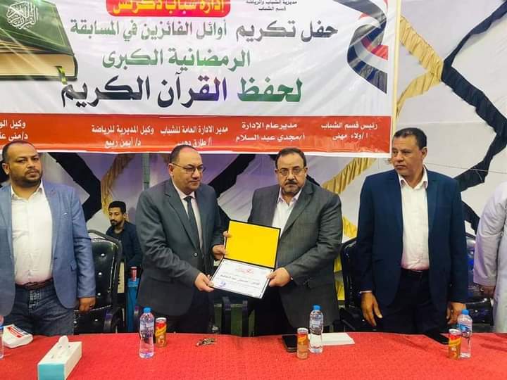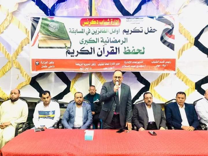 نظمت إدارة شباب دكرنس " قسم الشباب " حفل تكريم أوائل الفائزين فى المسابقة الرمضانية الكبرى لحفظ القرآن الكريم، بمقر مركز شباب منية مجاهد التابع لإدارة شباب دكرنس.