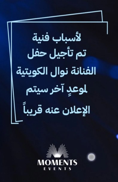 أعلنت الشركة المنظمة لحفل الفنانة نوال الكويتية، عن تأجيل الحفل الذى كان من المقرر إقامته في دبي،