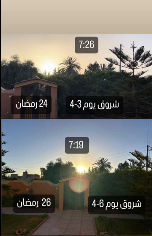 ليرد آخرين "الشمس ظهرت بالشعاع في منطقتنا والعلم لله وحده رب ارضَ عنا وأصلح أحوالنا واغفر لنا ما تقدم وما تأخر من ذنبنا وما أنت أعلم به منا".