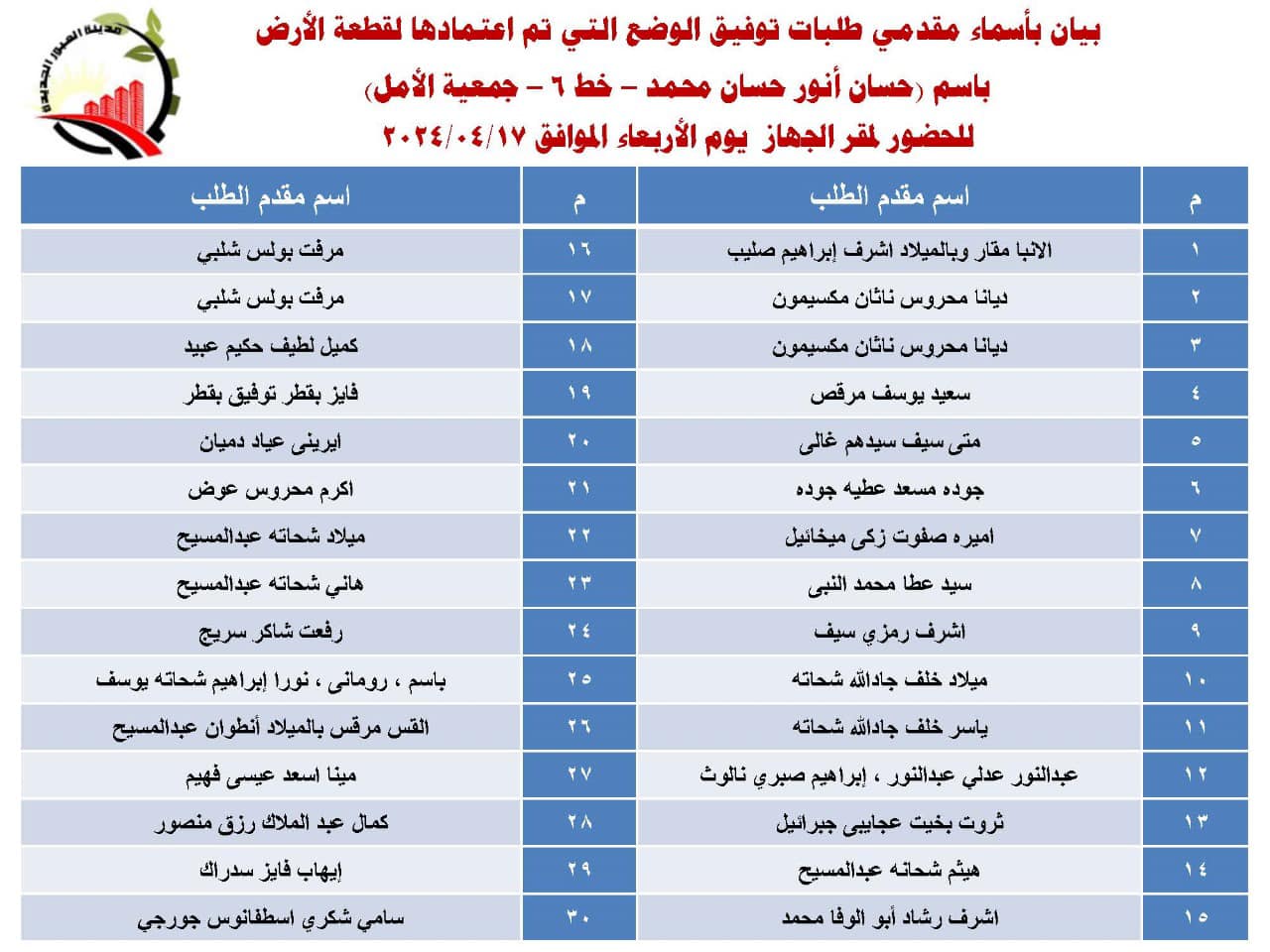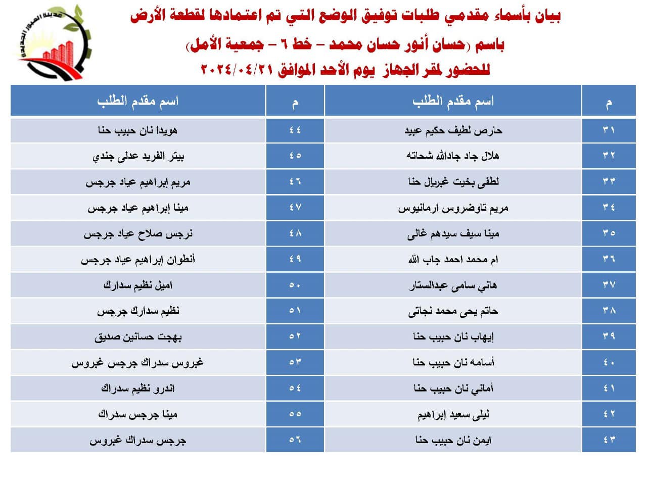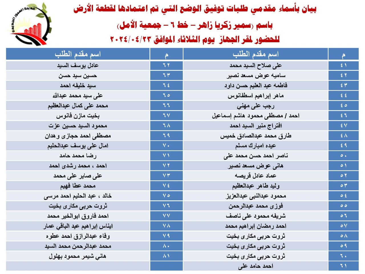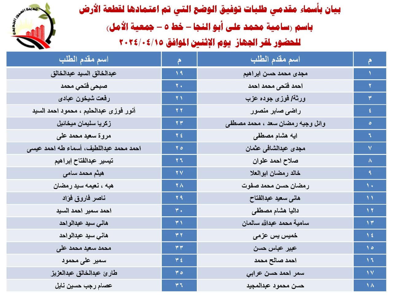 أعلن جهاز مدينة العبور الجديدة أسماء دفعة جديدة من المواطنين، الذين تم اعتماد توفيق الأوضاع لأراضيهم التابعة للمدينة.