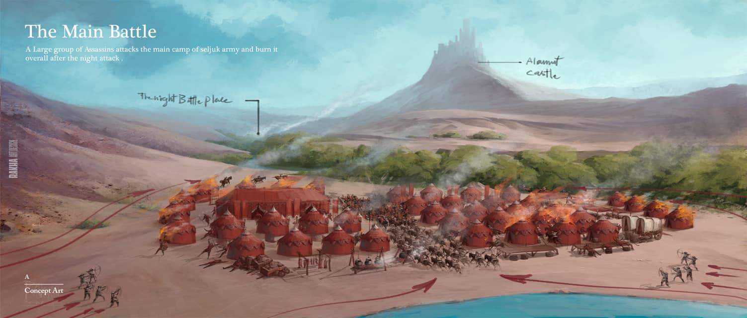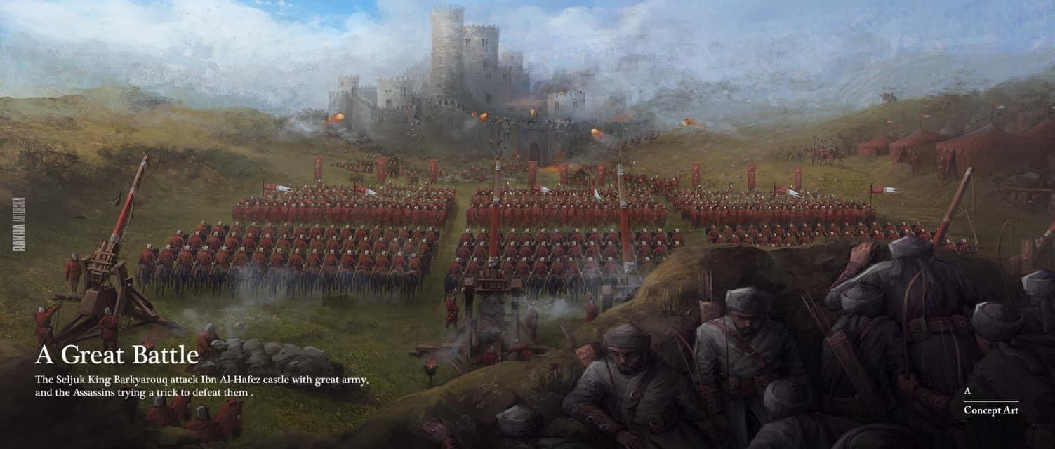 وكذلك تصميمات معركة الليل ومعركة قلعة ابن الحافظ الذي خاضها الجيش السلجوقي بقيادة السلطان بركياروق، وأيضا تصميمات لجنة حسن الصباح المزعومة وقلعة آلموت وغيرها.