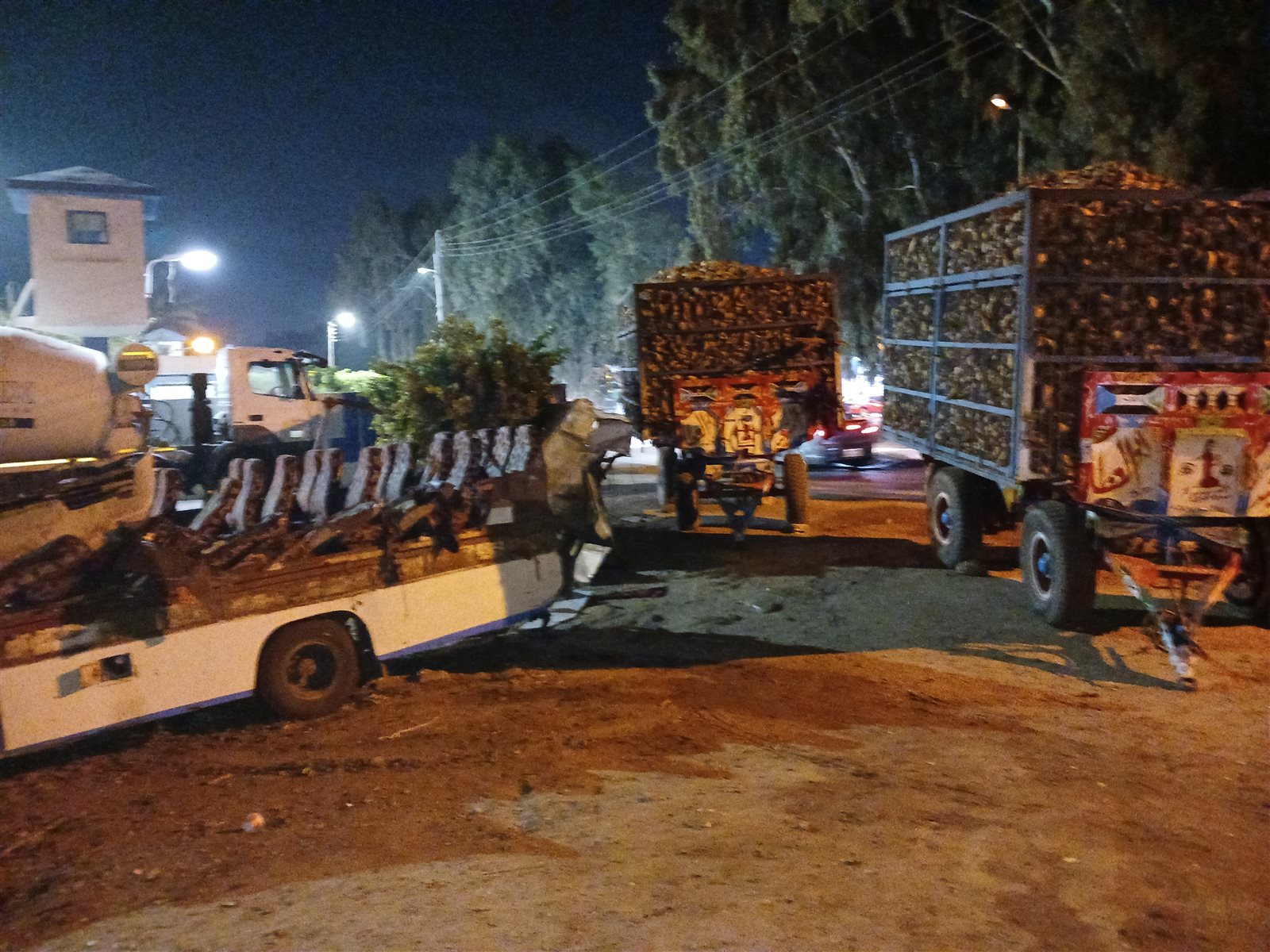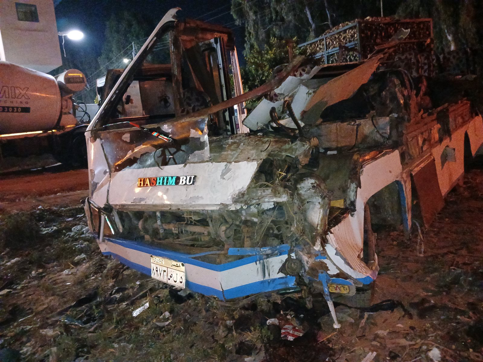 تصادم أتوبيس بجرار زراعي بطريق ترعة السلام الروضة ولا توجد حالات وفاة