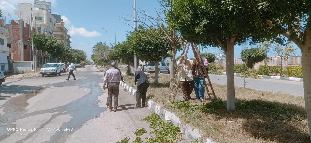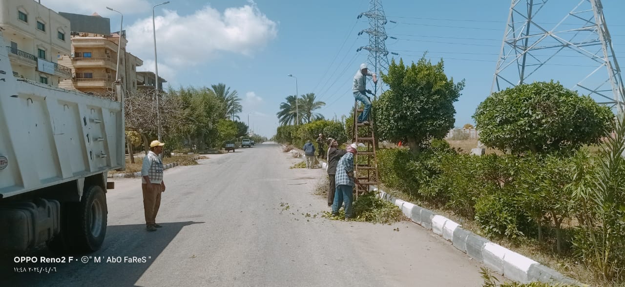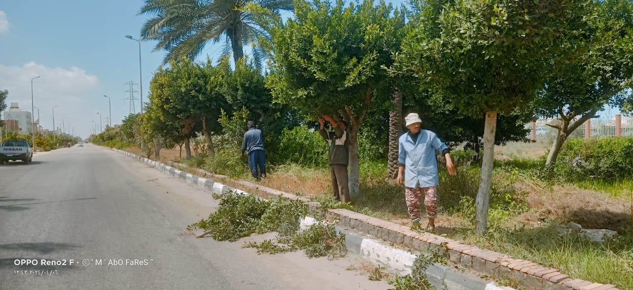 وتم تقليم أشجار الجزر الوسطى والحشائش وري الجزر الوسطى والحدائق والحملة مستمرة لحين الانتهاء من رفع كفاءة المنطقة بالكامل.