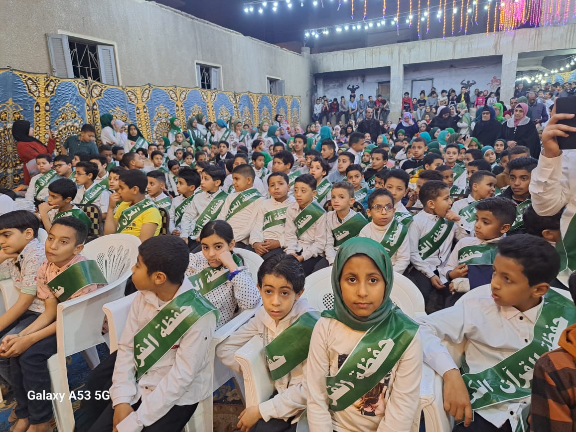 جاء ذلك في احتفالية كبرى بالقرية وسط زغاريد النساء وتكبير الرجال وارتداء المُكرمين من حفظة القرآن الكريم وشاح كُتب عليه "حفظة كتاب الله" متضمنًا اسم الطالب والطالبة حيث تم منحهم شهادات تكريم.