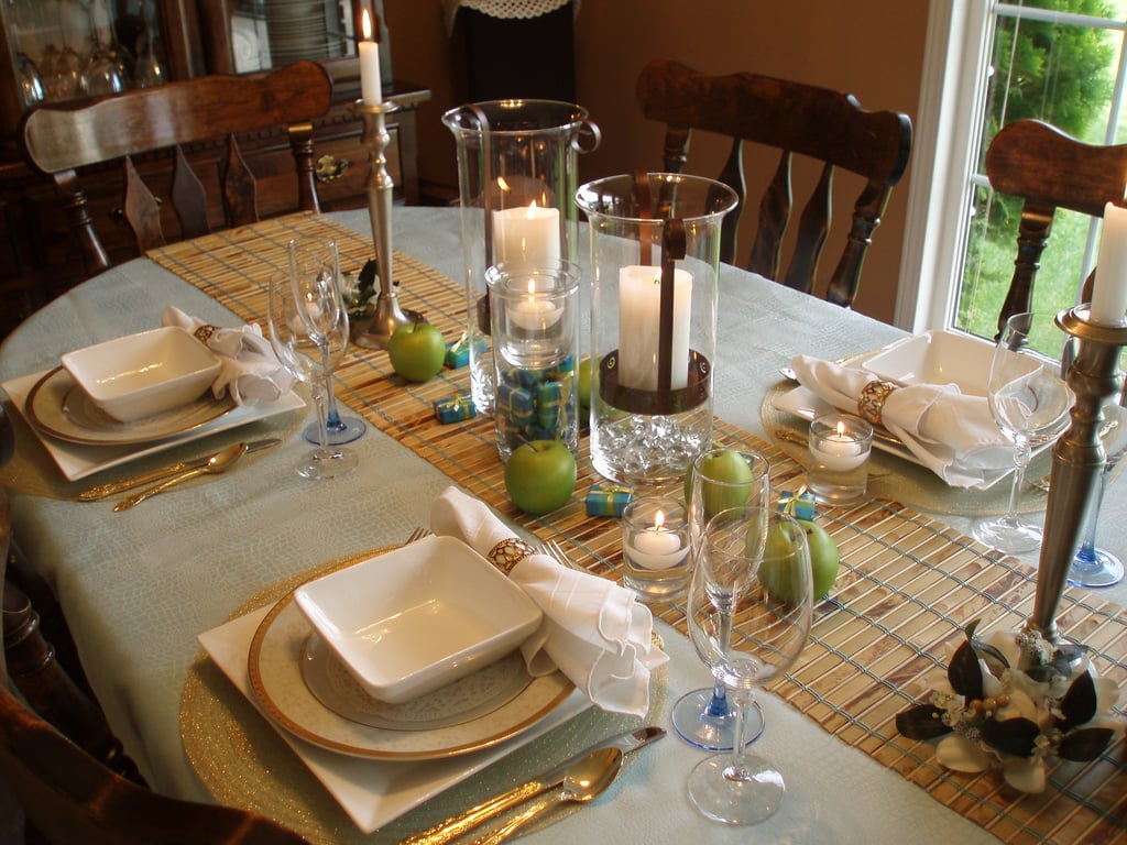 يمكنك استخدام مفرش طاولة من الحرير مع أدوات مائدة ذهبية لإضفاء لمسة من الفخامة.