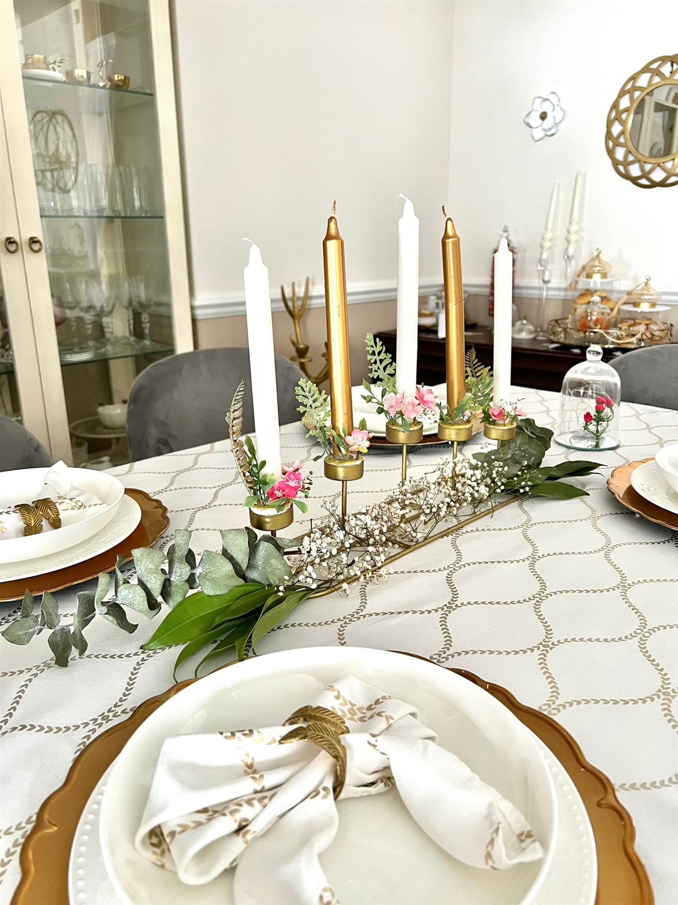 ضعي فازة من الزهور الطبيعية في وسط الطاولة.