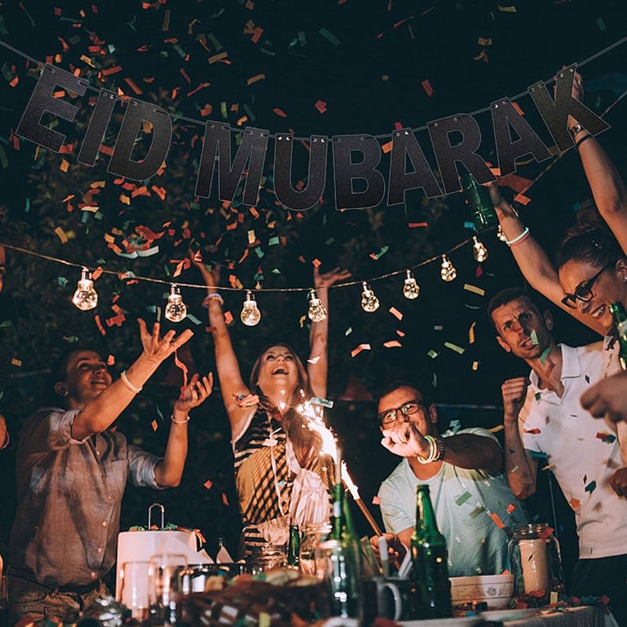 استخدمي زينة عيد الفطر مثل لافتات تحمل عيد مبارك، والنجوم والهلال.