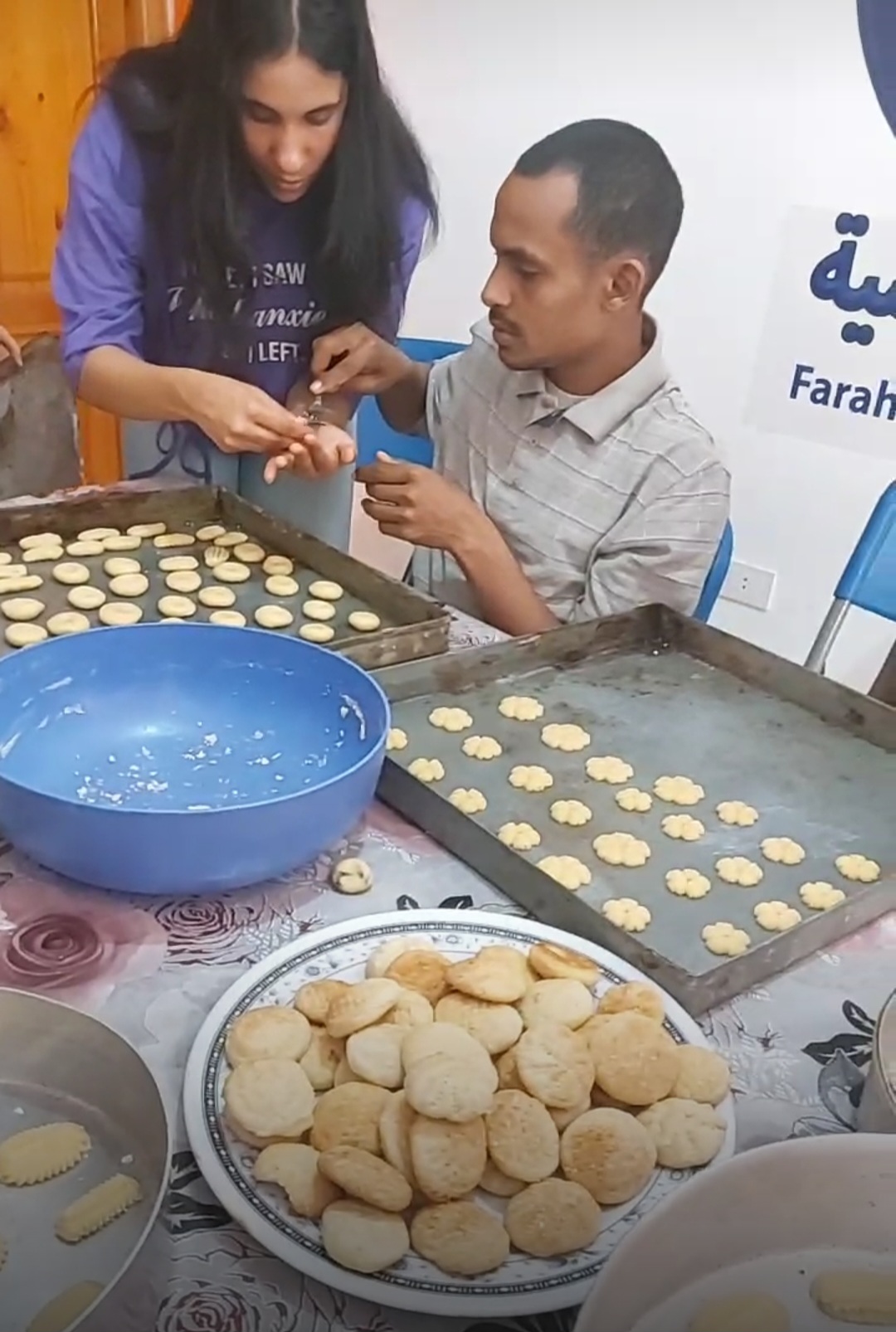 ومع اقتراب انتهاء شهر رمضان وبعد أن تم إقامة موائد إفطار جماعية لنزلاء بيت الفرح بمنطقة أبويوسف حي العجمي غرب الإسكندرية، لذوي الهمم والمتعاملين مع البيت من الخارج وجيران الدار، قام متطوعون بالبدء في أعمال الكحك والبسكويت والغريبة لفرحه العيد وليس هذا فقط بل قاموا بشراء ملابس العيد للأولاد والبنات.